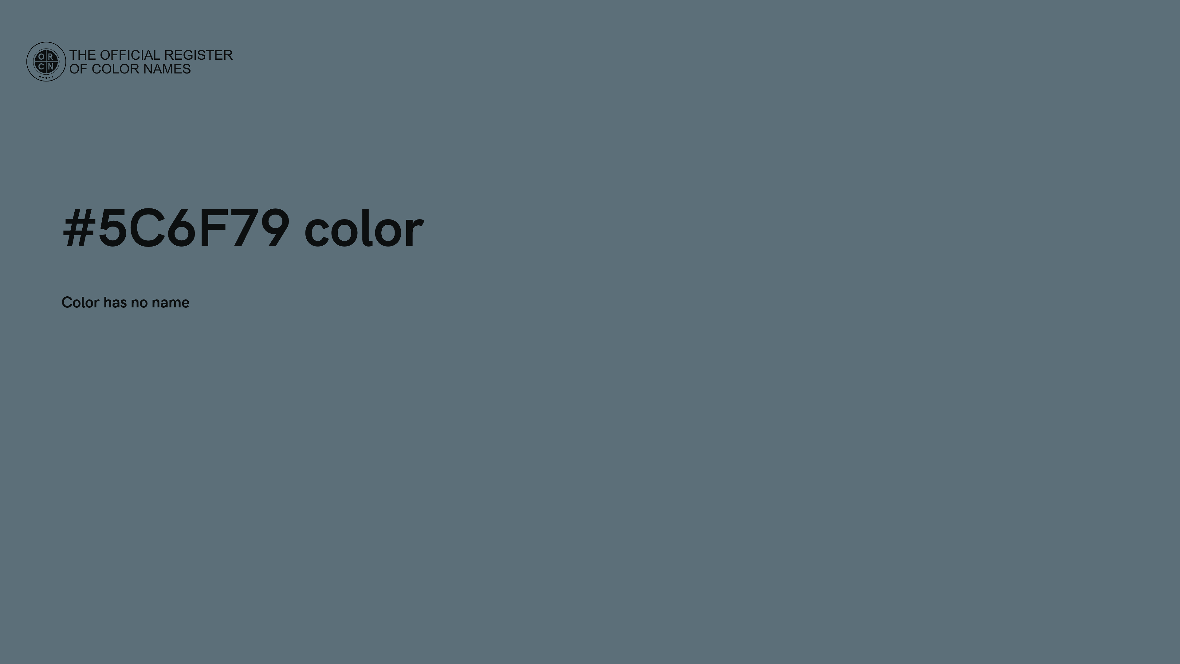 The digital color HEX #5C6F79 belongs to the Azure Color Family featuring Low Saturation (Saturation Family) and Light (Brightness Family).