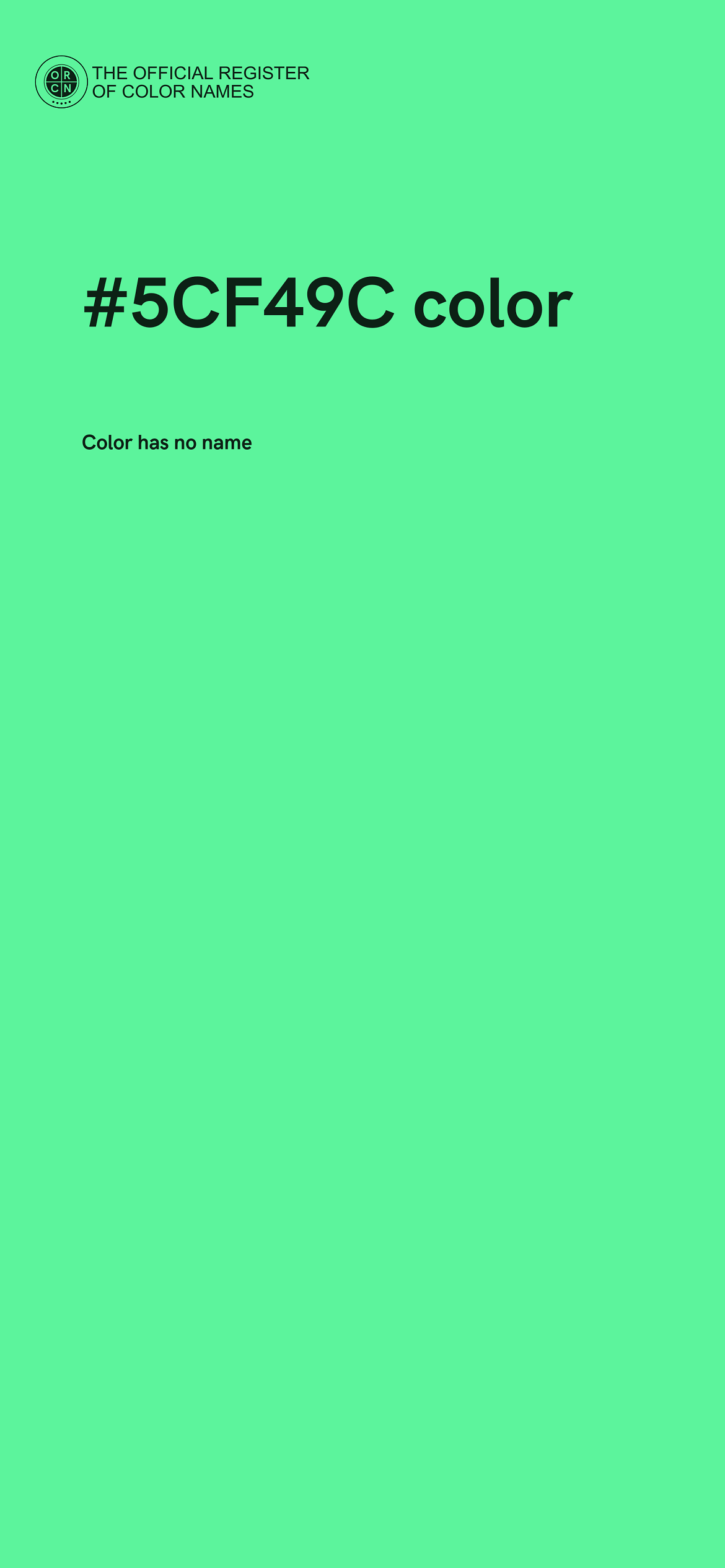The digital color HEX #5CF49C belongs to the Spring Green Color Family featuring Full Saturation (Saturation Family) and Very Light (Brightness Family).