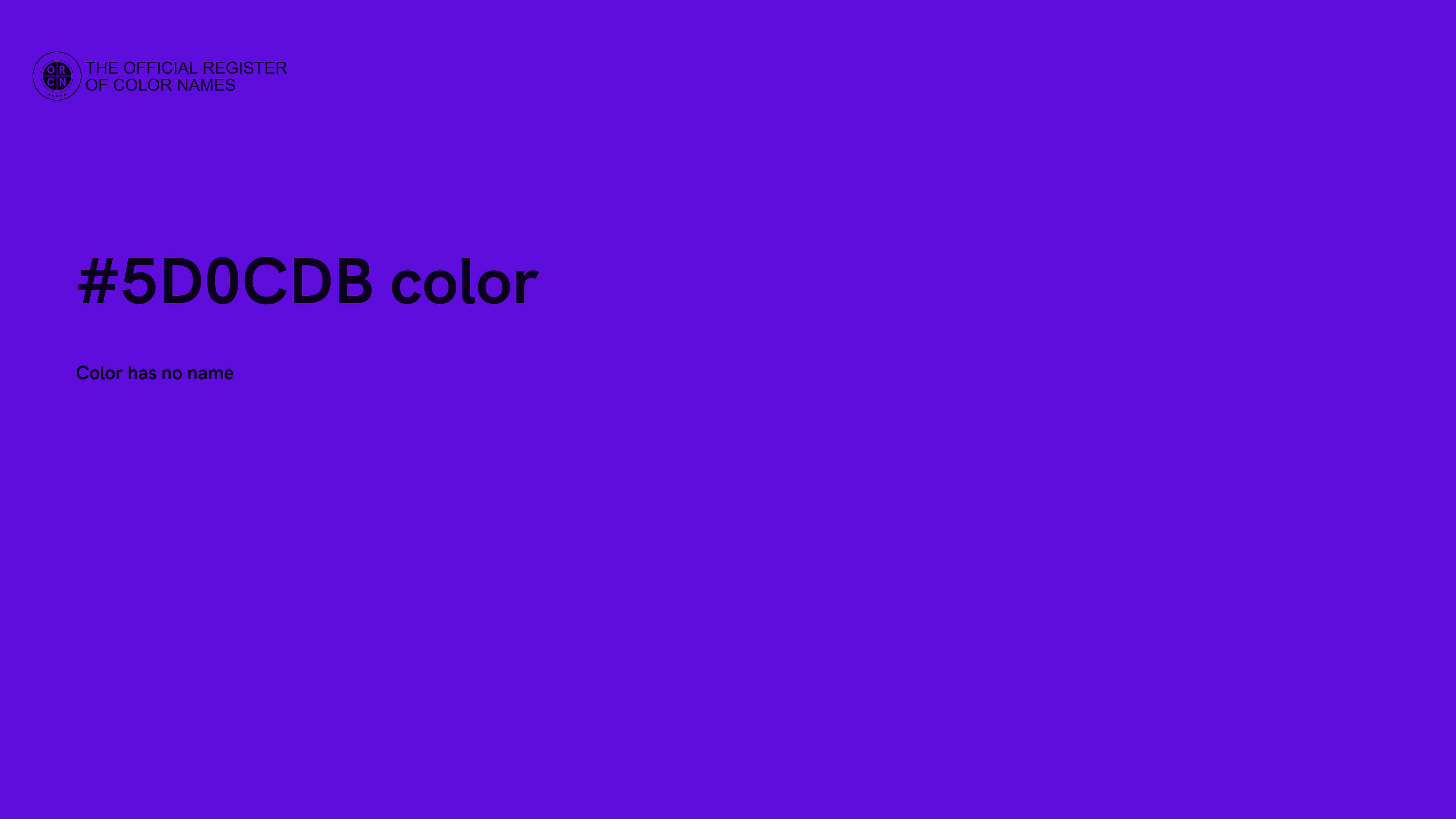 For printing in non digital world, #5D0CDB is represented in CMYK as 49 Cyan, 81 Magenta, 0 Yellow, and 14 Black (Key) (C:49 M:81 Y:0 K:14).