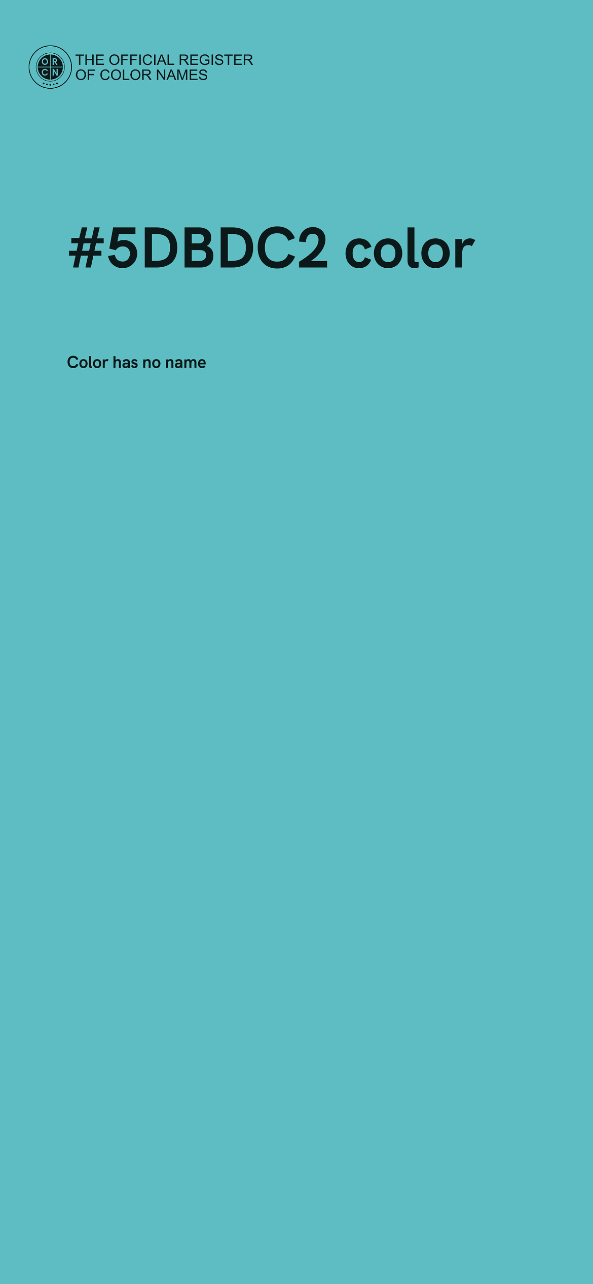 For printing in non digital world, #5DBDC2 is represented in CMYK as 40 Cyan, 2 Magenta, 0 Yellow, and 24 Black (Key) (C:40 M:2 Y:0 K:24).