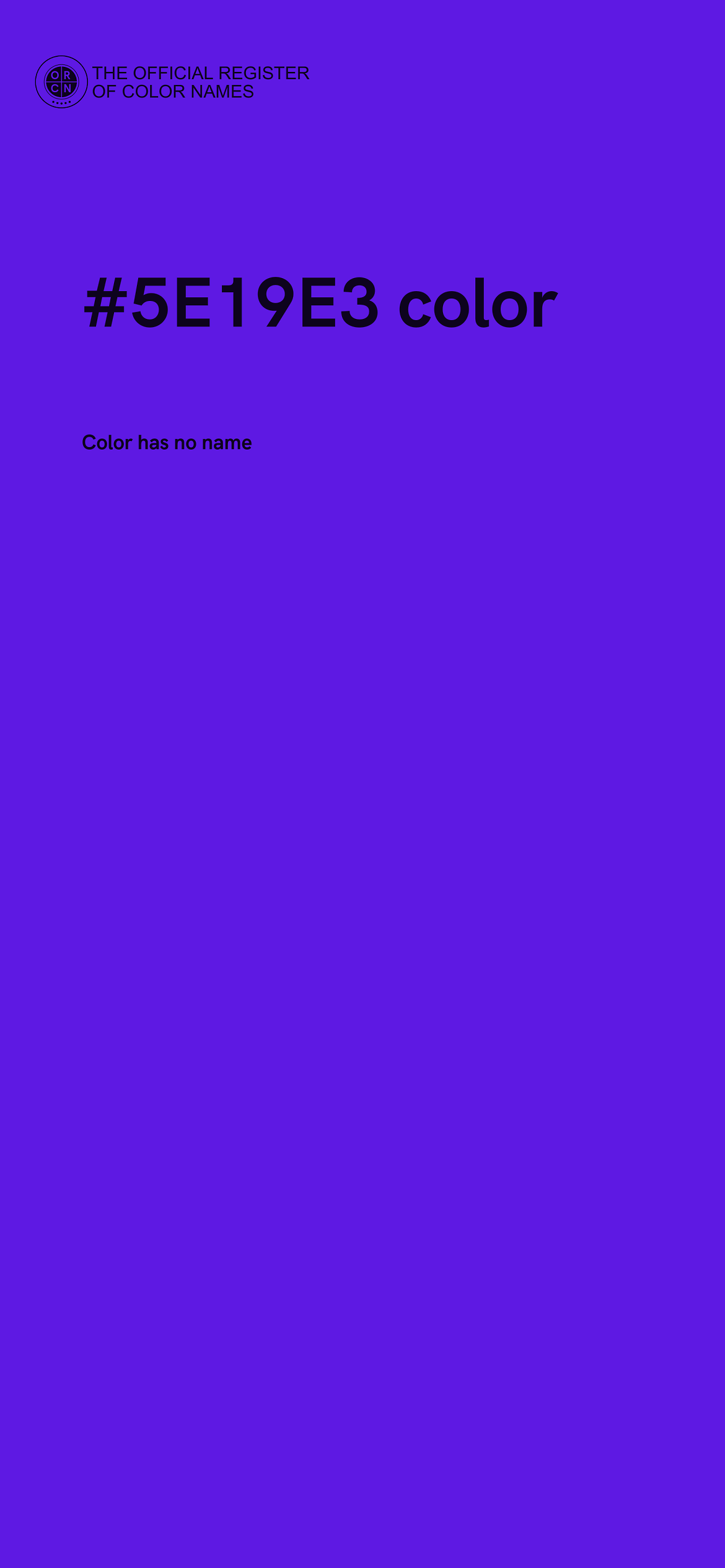 The digital color HEX #5E19E3 belongs to the Violet Color Family featuring High Saturation (Saturation Family) and Light (Brightness Family).