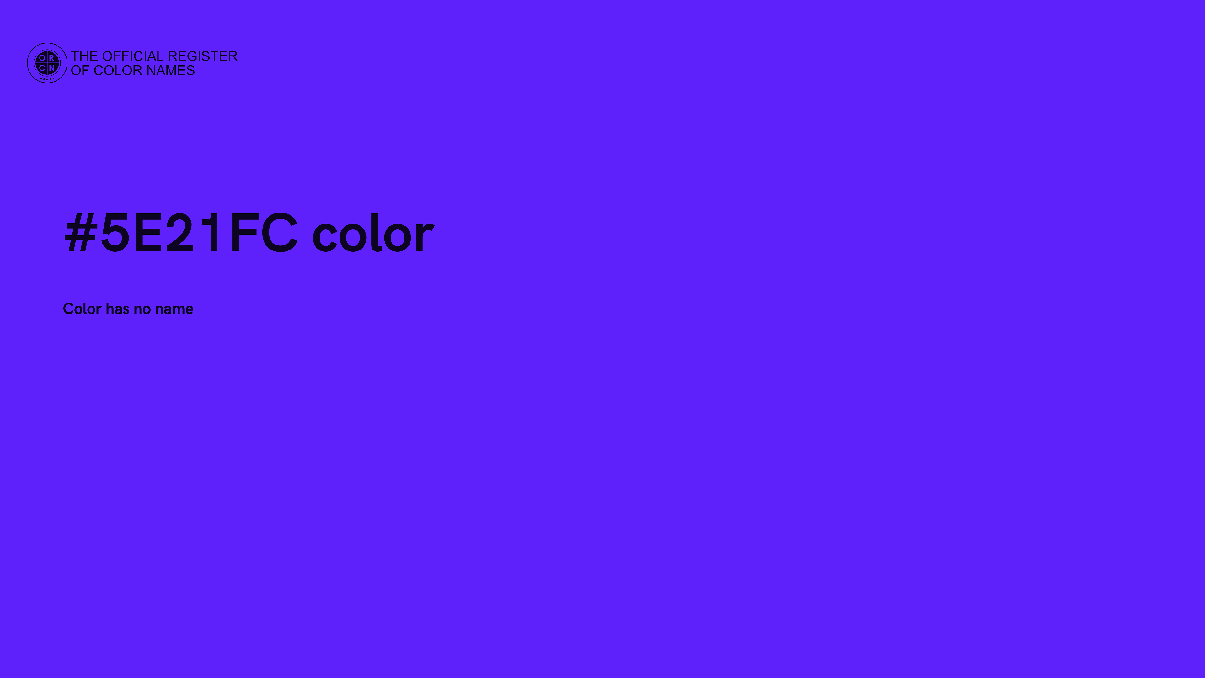 For printing in non digital world, #5E21FC is represented in CMYK as 62 Cyan, 86 Magenta, 0 Yellow, and 1 Black (Key) (C:62 M:86 Y:0 K:1).