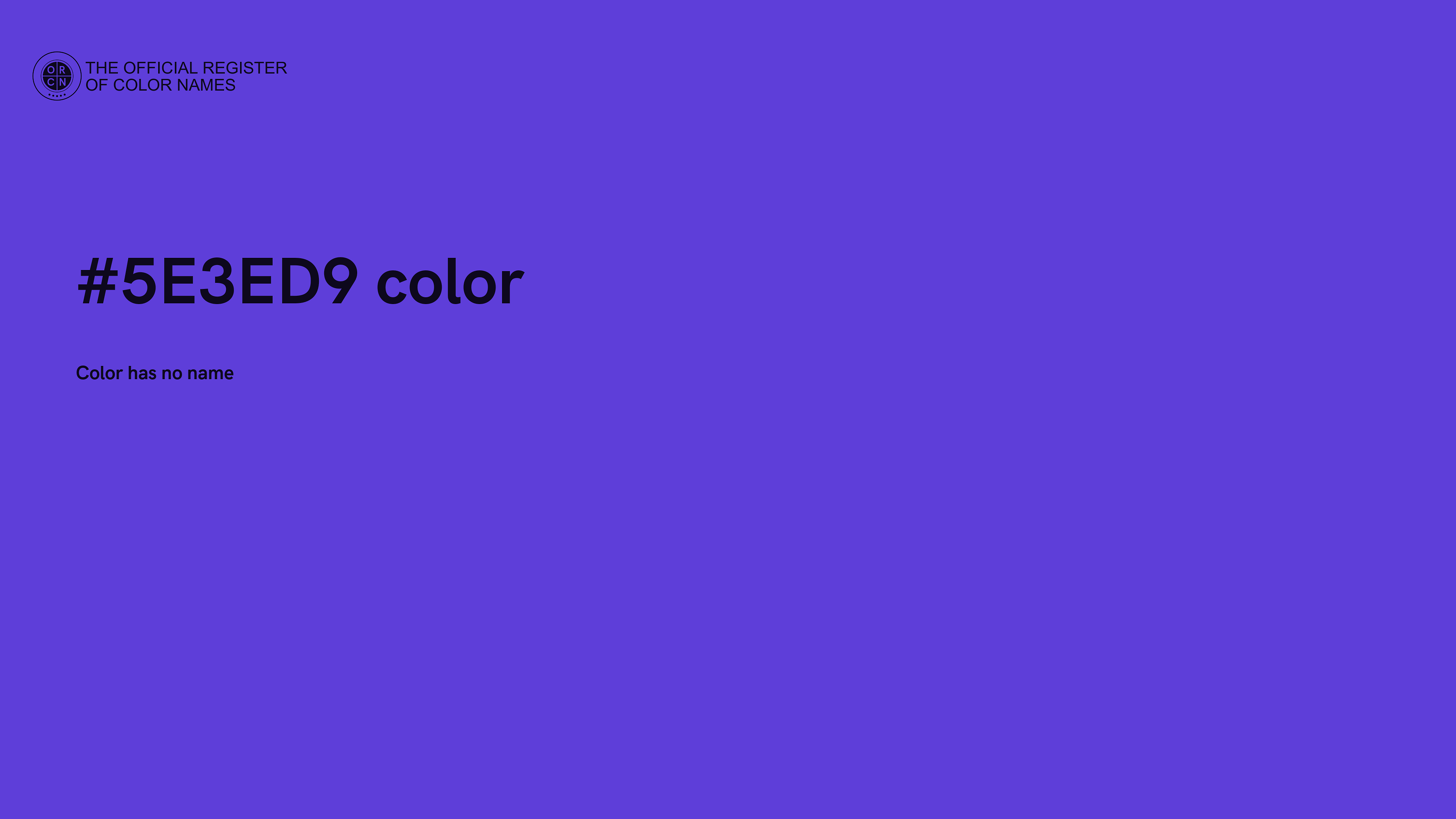 The digital color HEX #5E3ED9 belongs to the Blue Color Family featuring High Saturation (Saturation Family) and Light (Brightness Family).