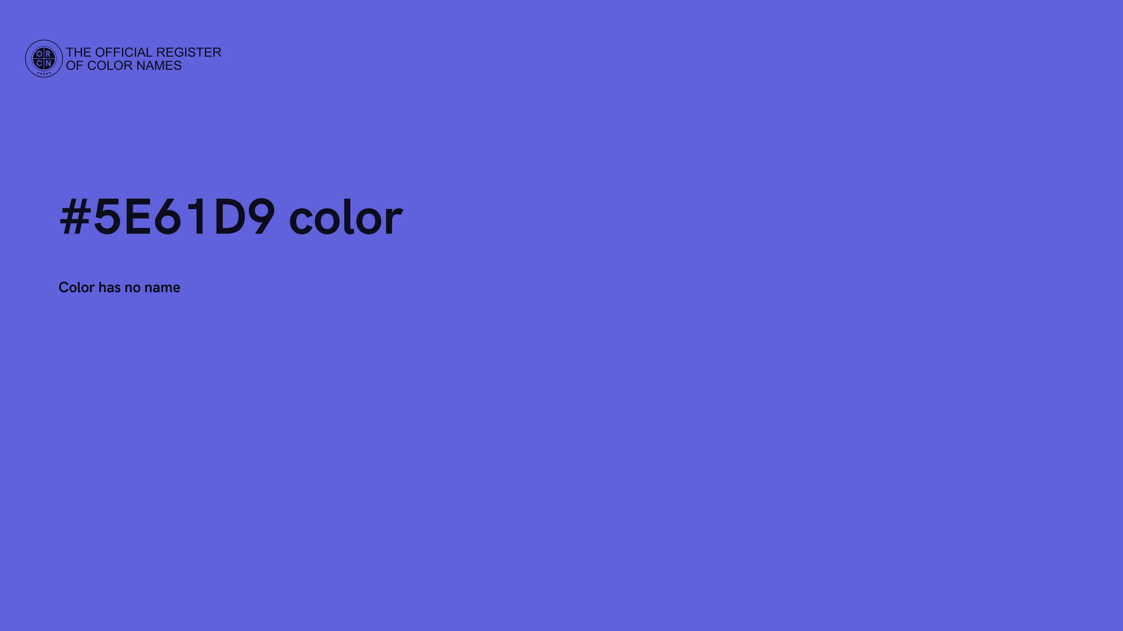 The digital color HEX #5E61D9 belongs to the Blue Color Family featuring High Saturation (Saturation Family) and Very Light (Brightness Family).