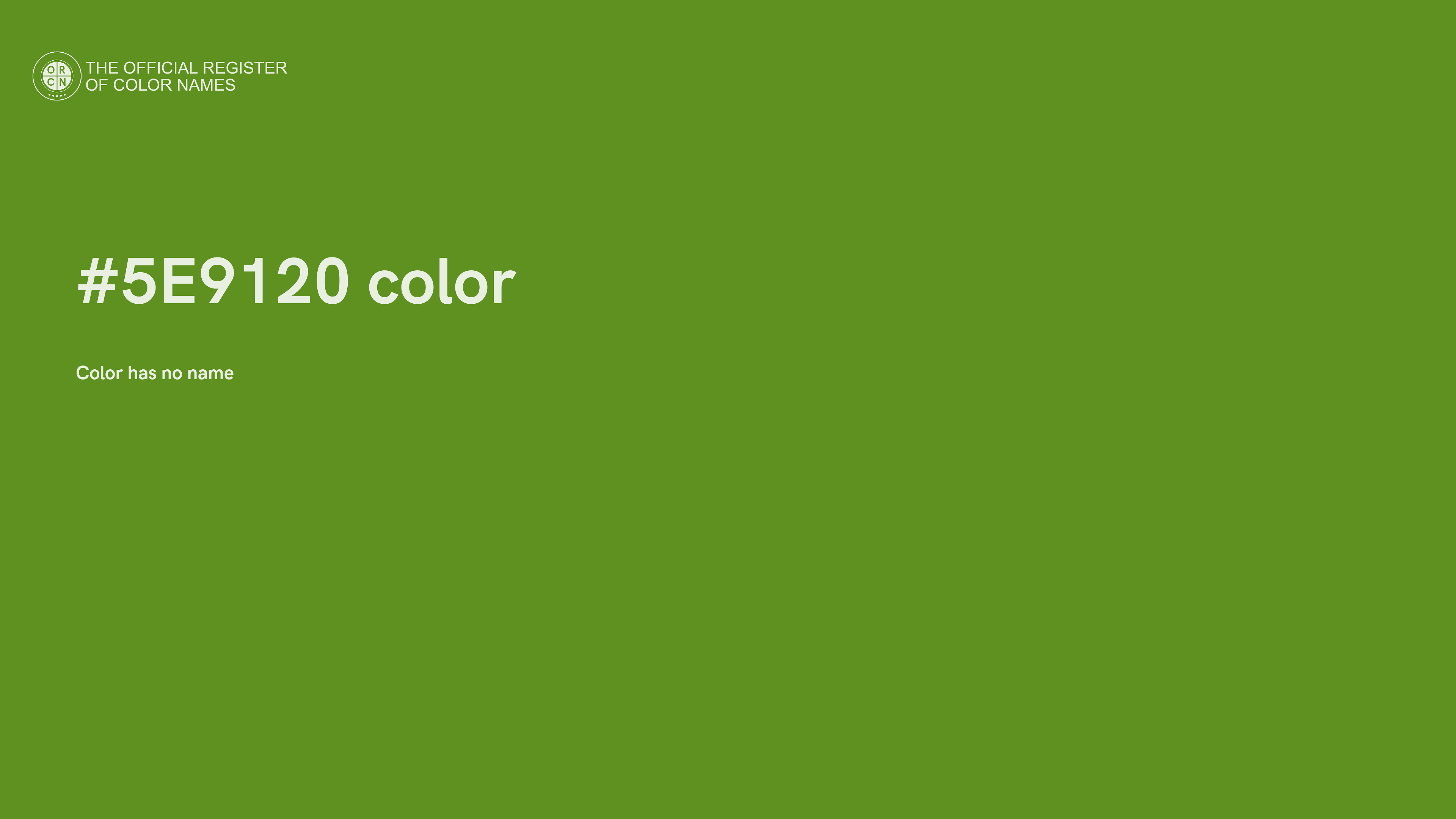 The digital color HEX #5E9120 belongs to the Chartreuse Color Family featuring High Saturation (Saturation Family) and Neutral (Brightness Family).