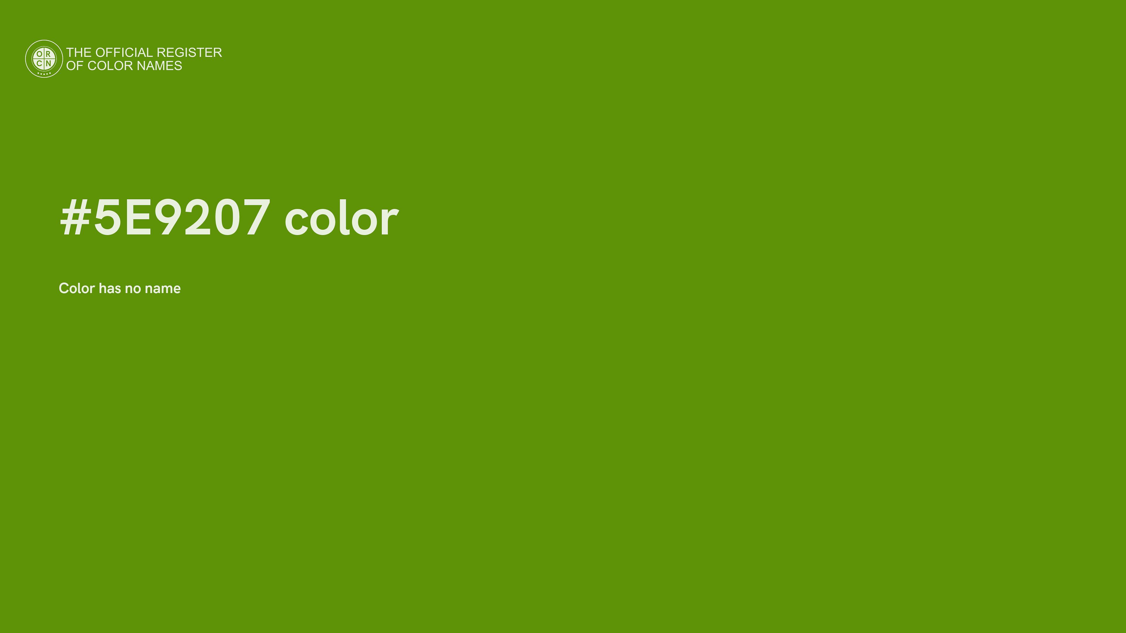 The digital color HEX #5E9207 belongs to the Chartreuse Color Family featuring Full Saturation (Saturation Family) and Neutral (Brightness Family).
