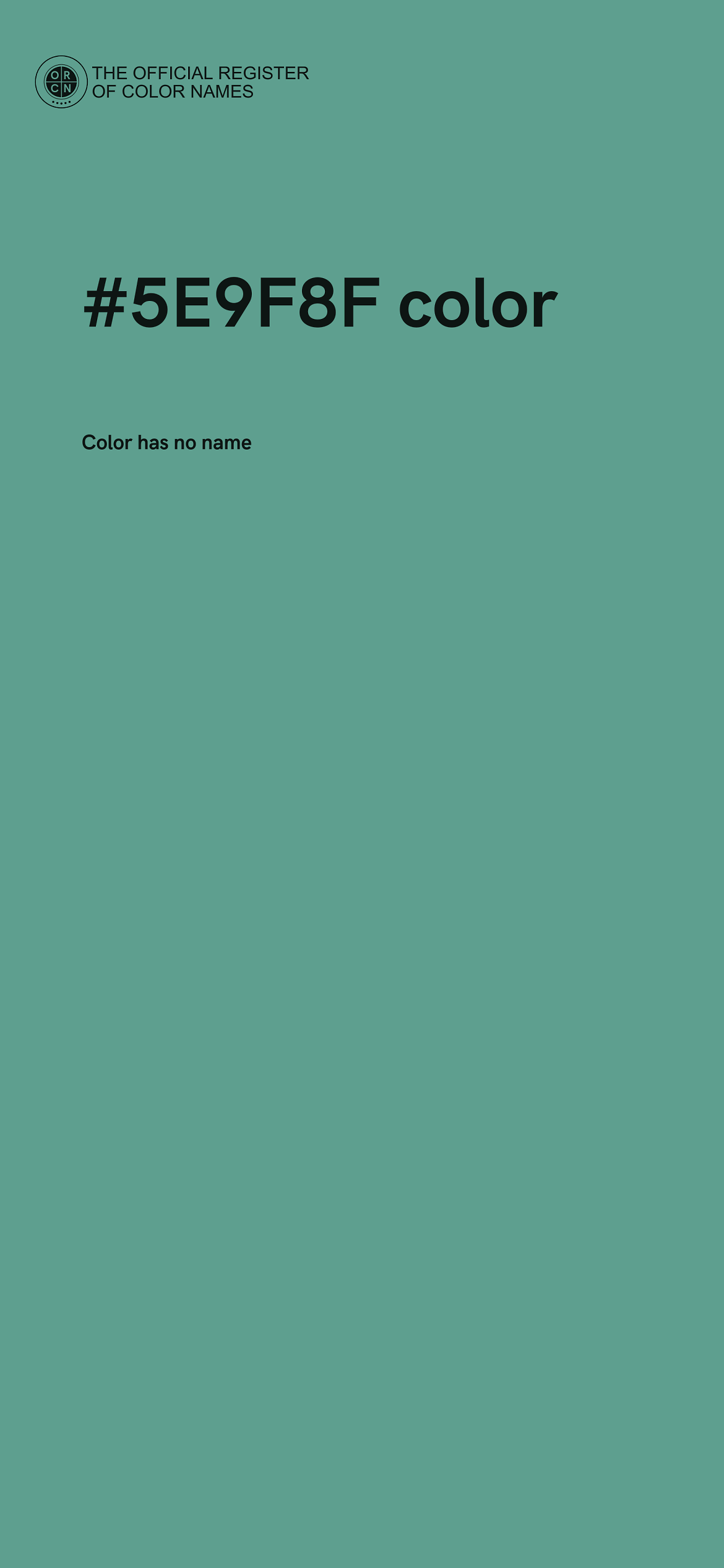 The digital color HEX #5E9F8F belongs to the Cyan Color Family featuring Mild Saturation (Saturation Family) and Light (Brightness Family).
