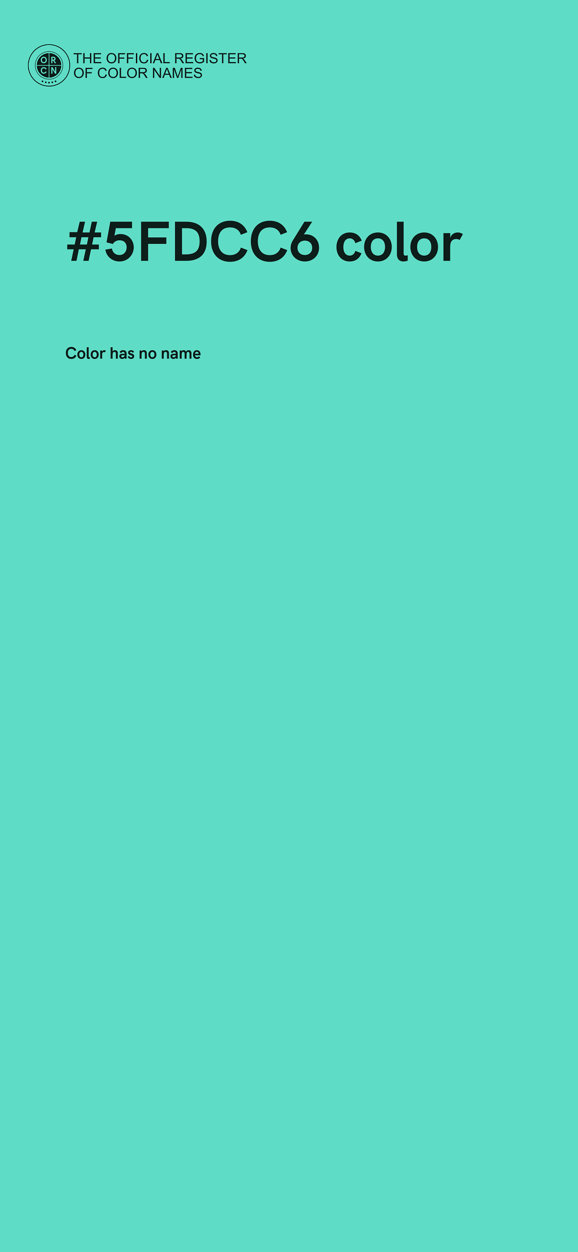 The digital color HEX #5FDCC6 belongs to the Cyan Color Family featuring High Saturation (Saturation Family) and Very Light (Brightness Family).