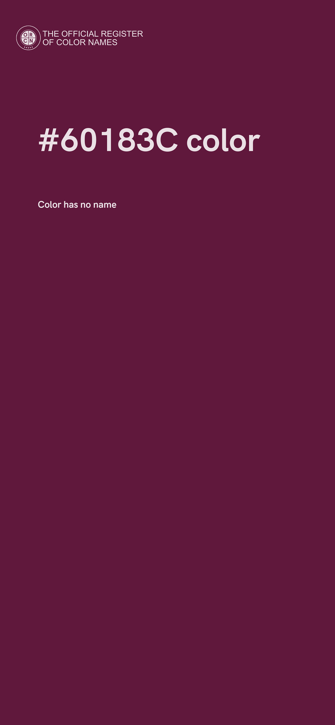 The digital color HEX #60183C belongs to the Rose Color Family featuring High Saturation (Saturation Family) and Dark (Brightness Family).