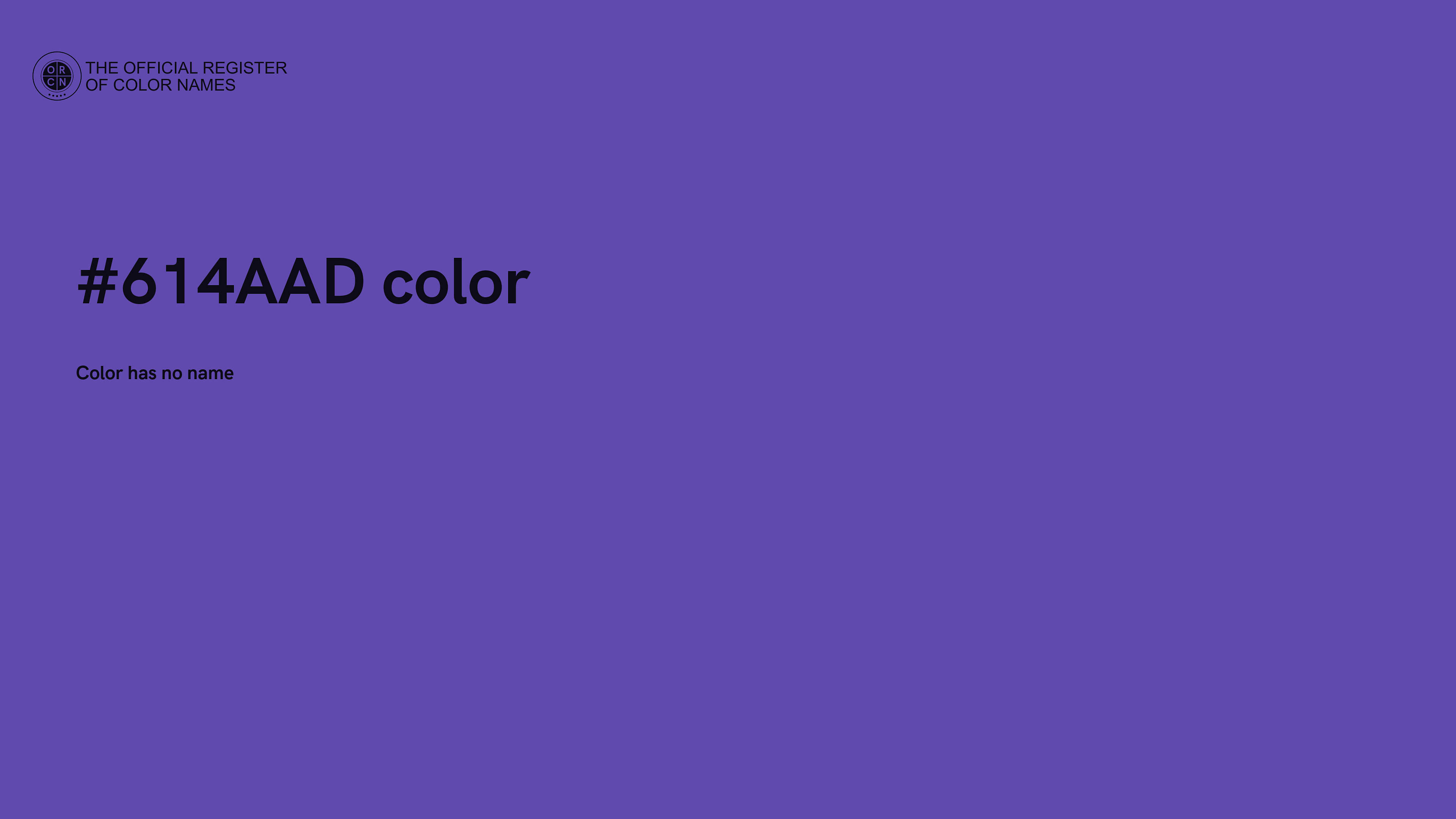The digital color HEX #614AAD belongs to the Blue Color Family featuring Moderate Saturation (Saturation Family) and Light (Brightness Family).