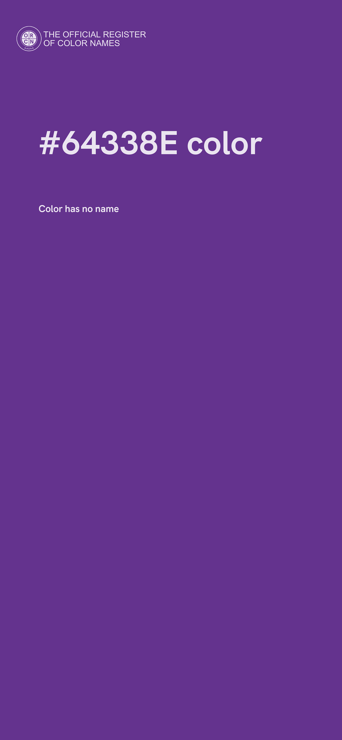 The digital color HEX #64338E belongs to the Violet Color Family featuring Moderate Saturation (Saturation Family) and Neutral (Brightness Family).