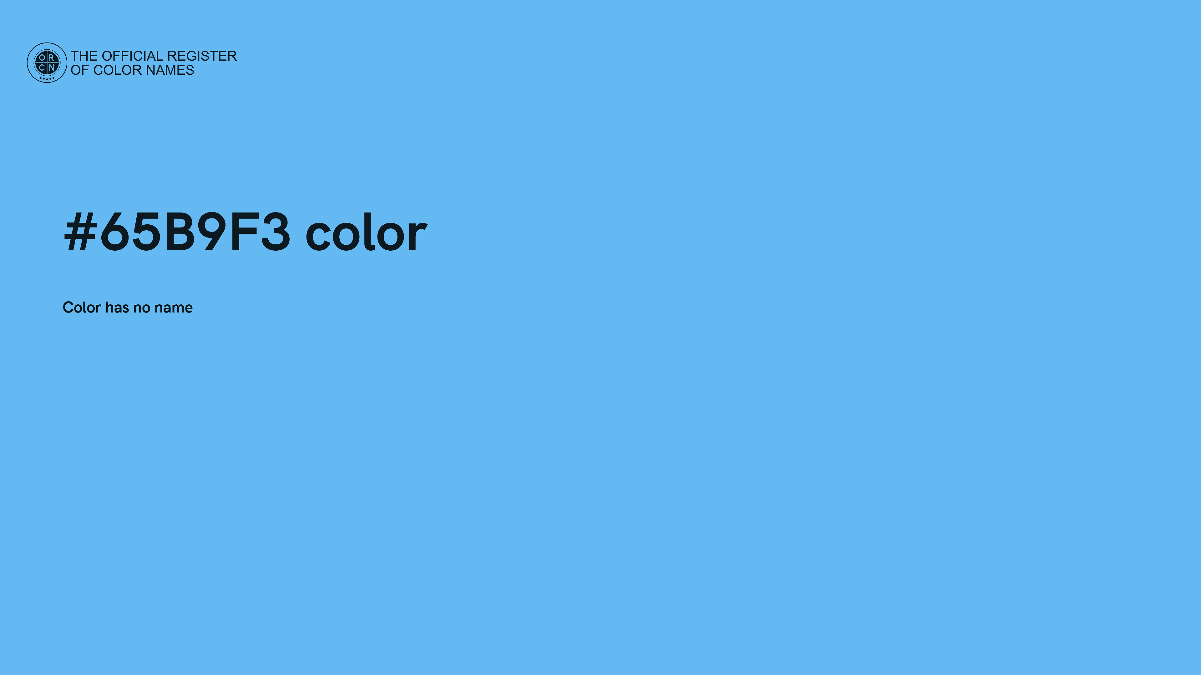 The digital color HEX #65B9F3 belongs to the Azure Color Family featuring Full Saturation (Saturation Family) and Very Light (Brightness Family).