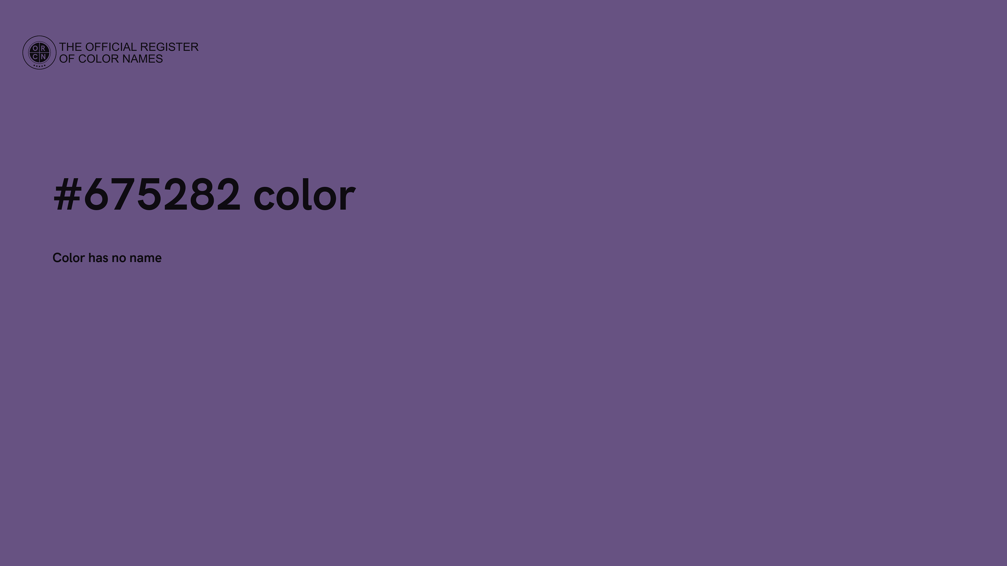 For printing in non digital world, #675282 is represented in CMYK as 11 Cyan, 19 Magenta, 0 Yellow, and 49 Black (Key) (C:11 M:19 Y:0 K:49).