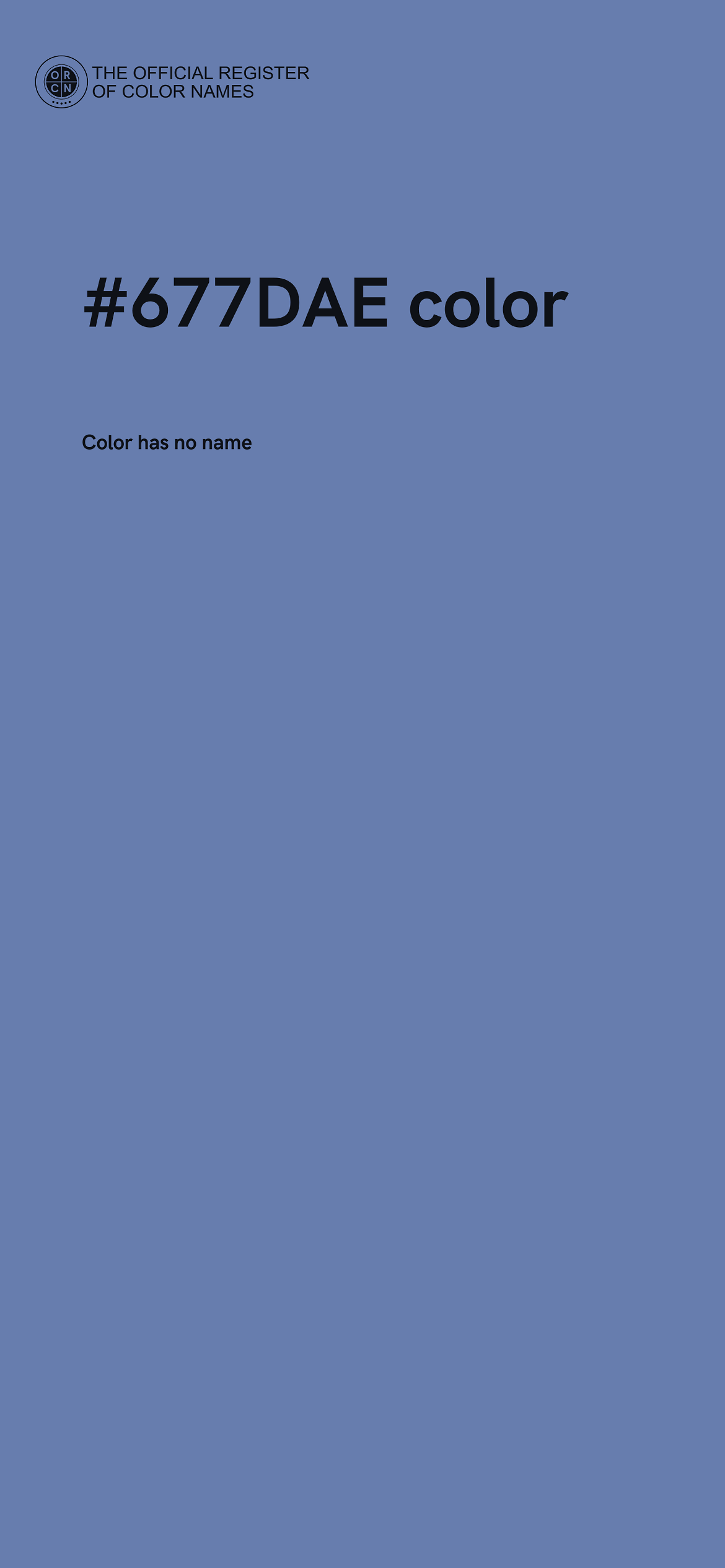 The digital color HEX #677DAE belongs to the Azure Color Family featuring Mild Saturation (Saturation Family) and Light (Brightness Family).
