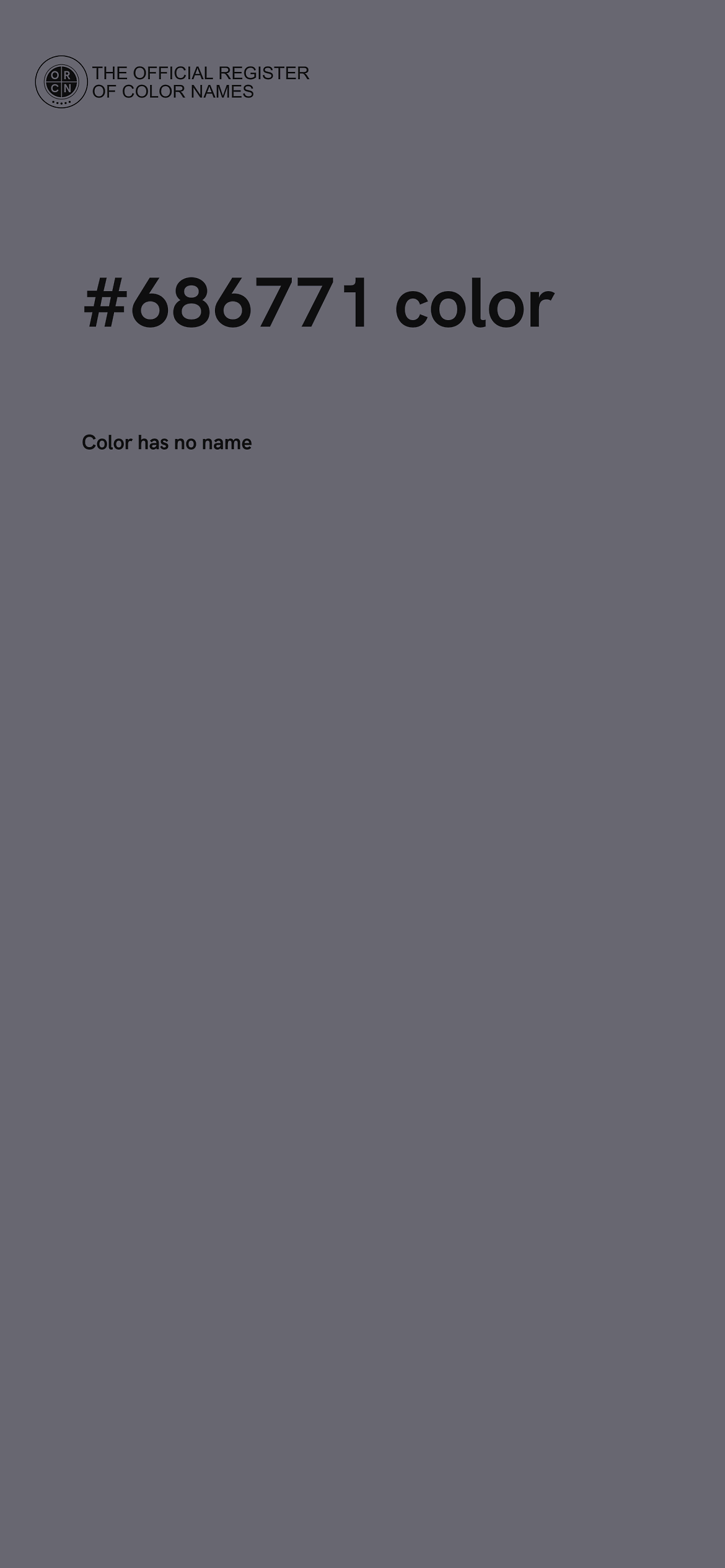 The digital color HEX #686771 belongs to the Blue Color Family featuring Desaturated (Saturation Family) and Light (Brightness Family).