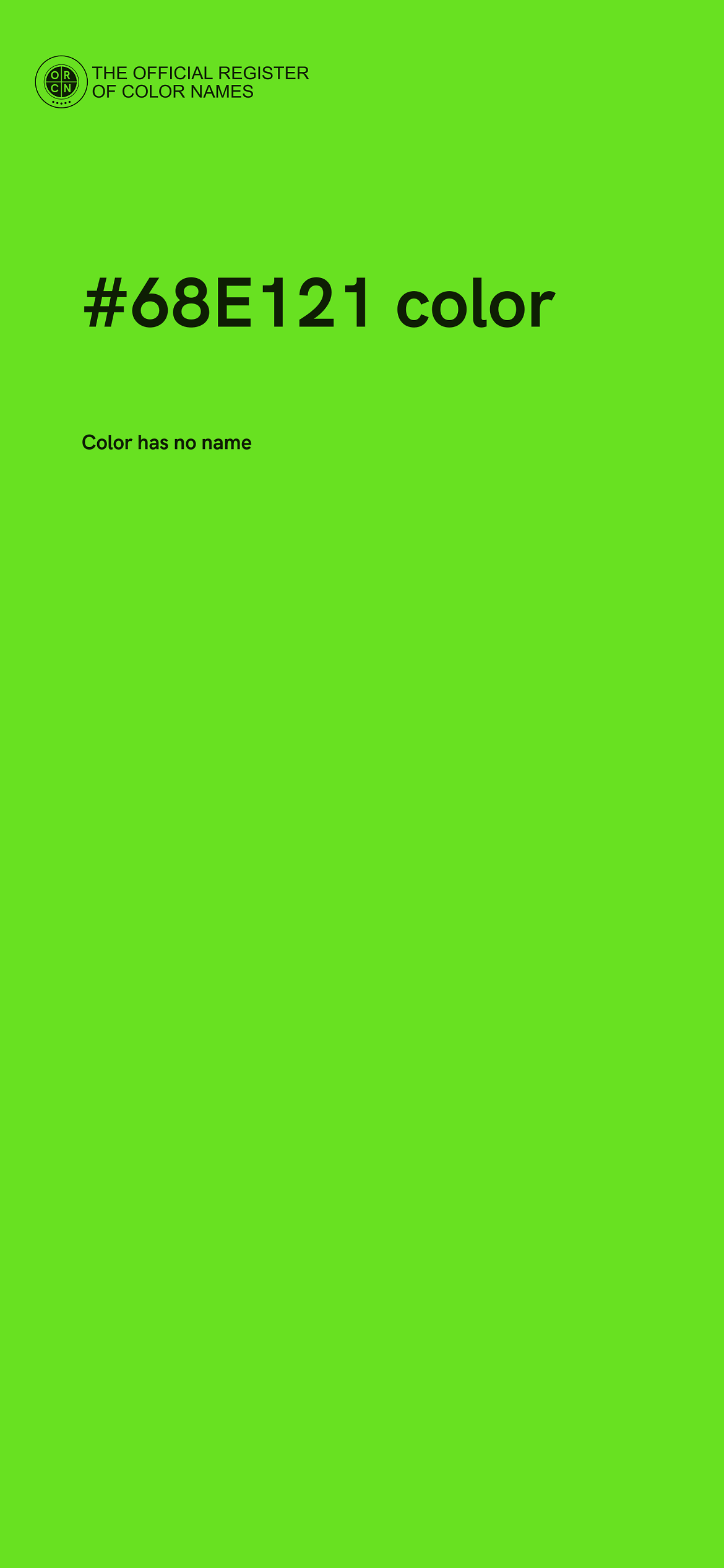 The digital color HEX #68E121 belongs to the Chartreuse Color Family featuring High Saturation (Saturation Family) and Light (Brightness Family).