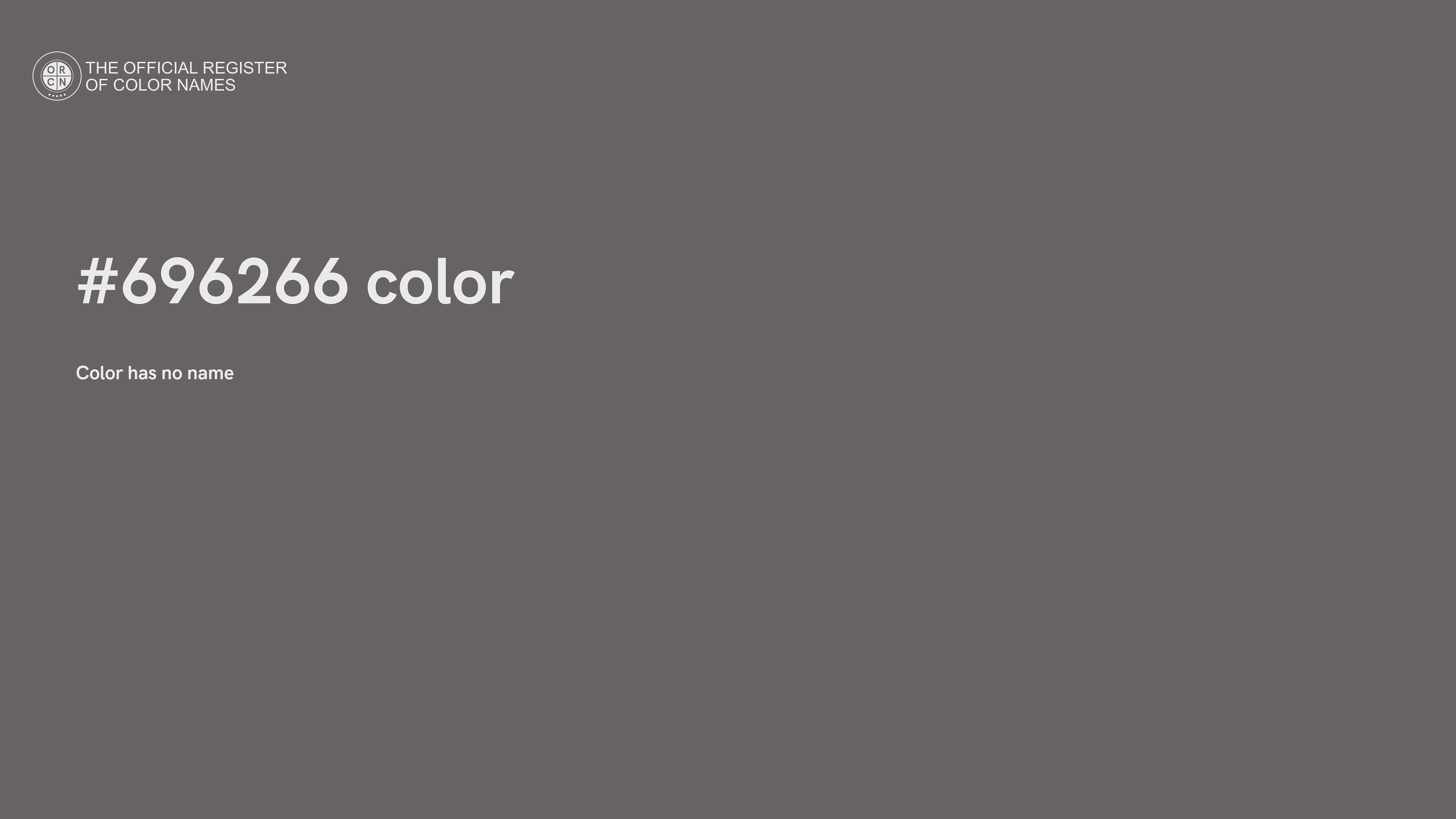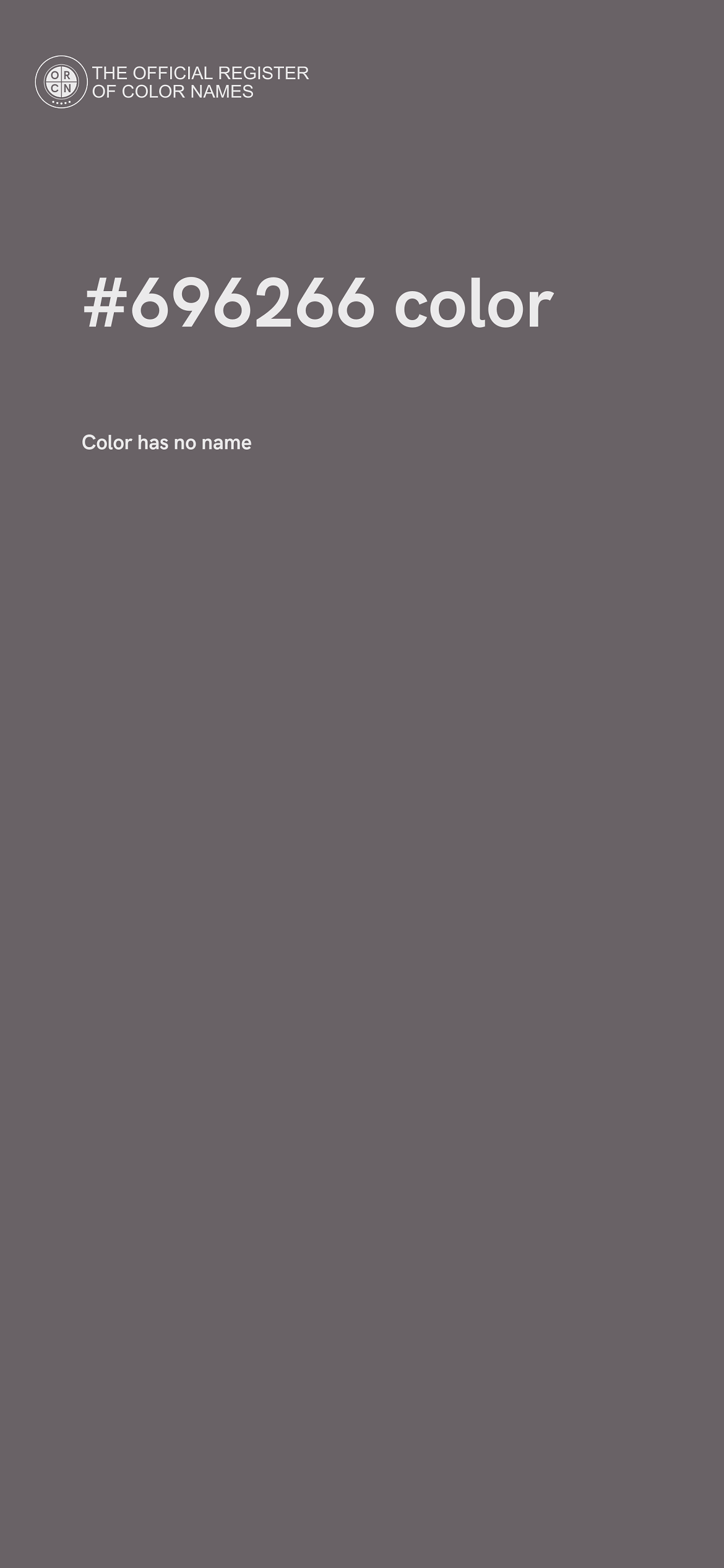For printing in non digital world, #696266 is represented in CMYK as 0 Cyan, 3 Magenta, 1 Yellow, and 59 Black (Key) (C:0 M:3 Y:1 K:59).