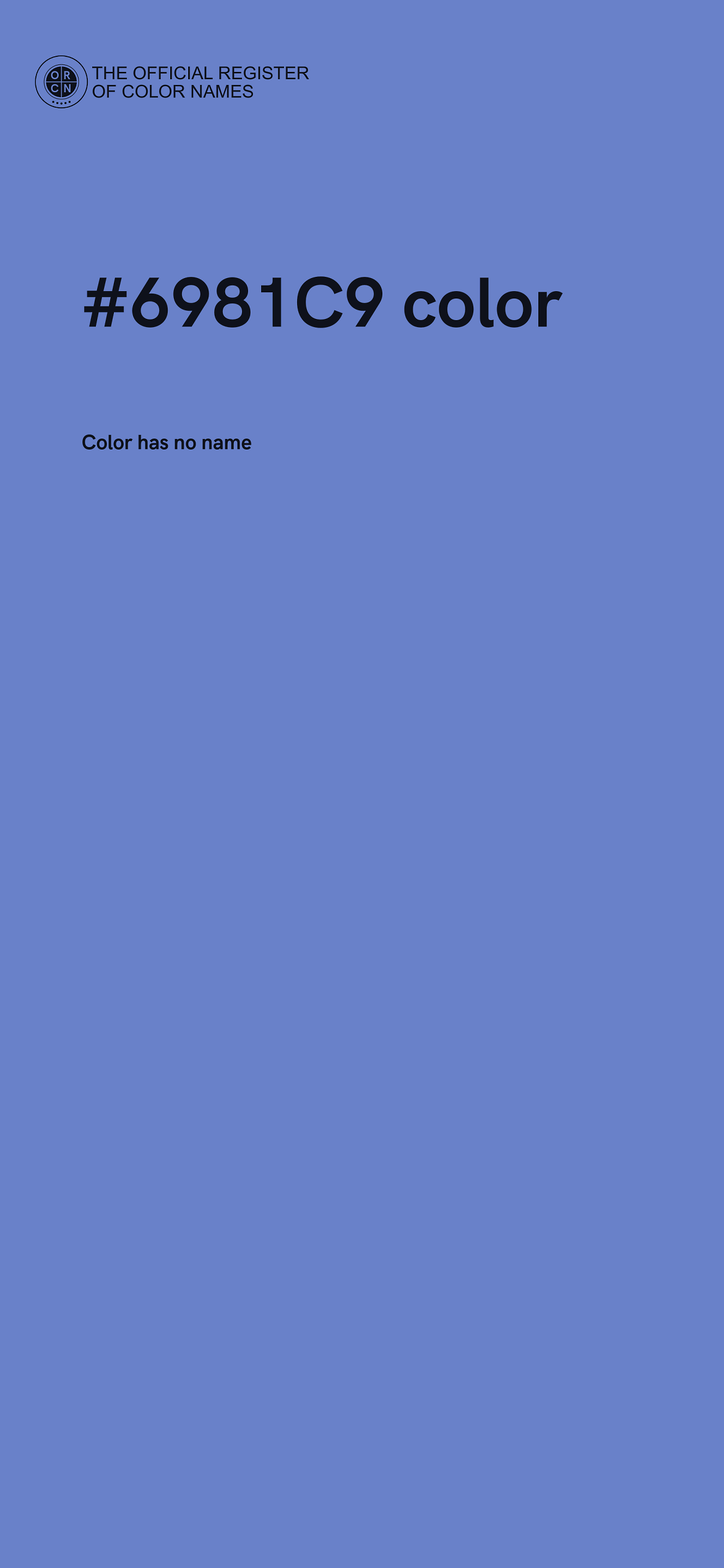 For printing in non digital world, #6981C9 is represented in CMYK as 38 Cyan, 28 Magenta, 0 Yellow, and 21 Black (Key) (C:38 M:28 Y:0 K:21).