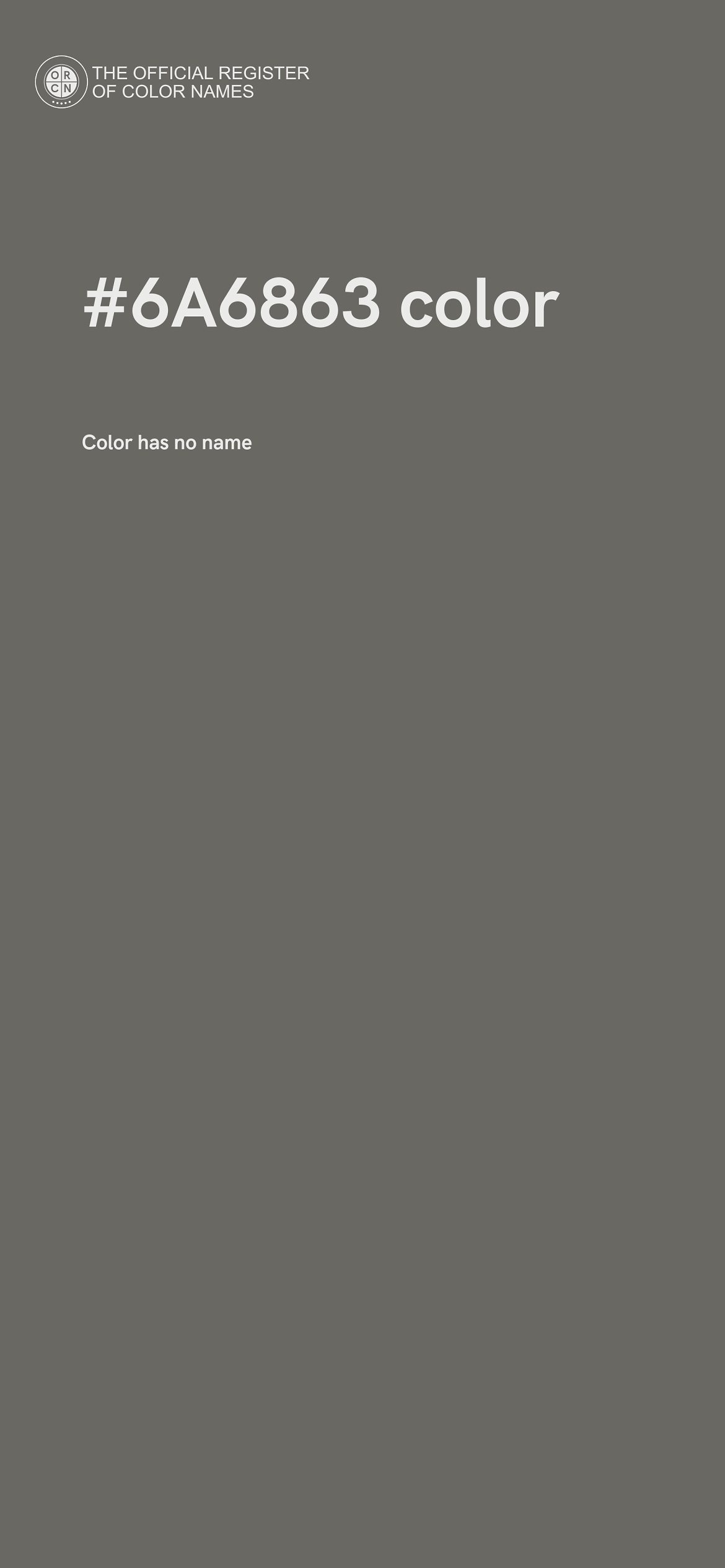 The digital color HEX #6A6863 belongs to the Orange Color Family featuring Desaturated (Saturation Family) and Light (Brightness Family).