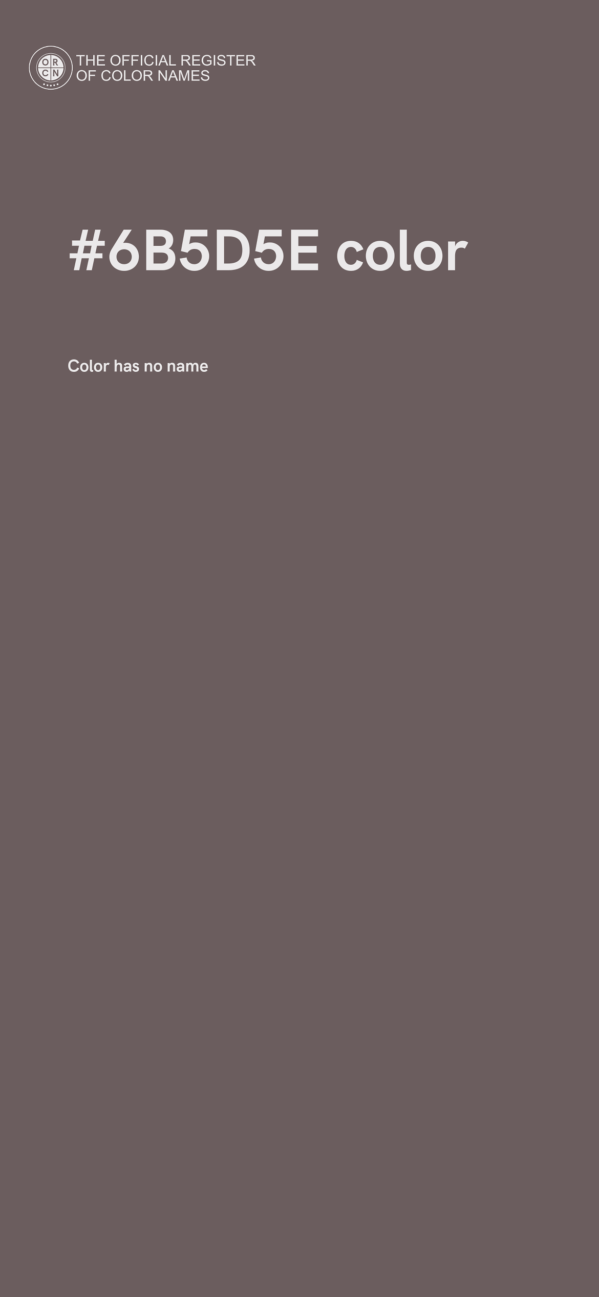 The digital color HEX #6B5D5E belongs to the Red Color Family featuring Desaturated (Saturation Family) and Neutral (Brightness Family).