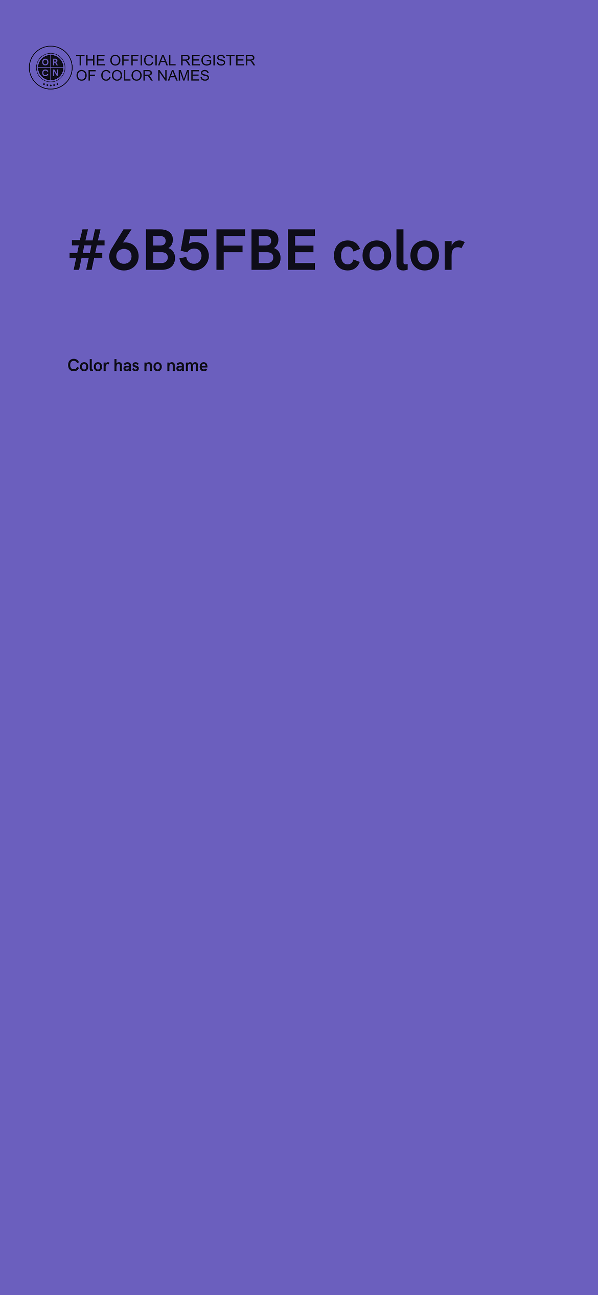 The digital color HEX #6B5FBE belongs to the Blue Color Family featuring Moderate Saturation (Saturation Family) and Light (Brightness Family).