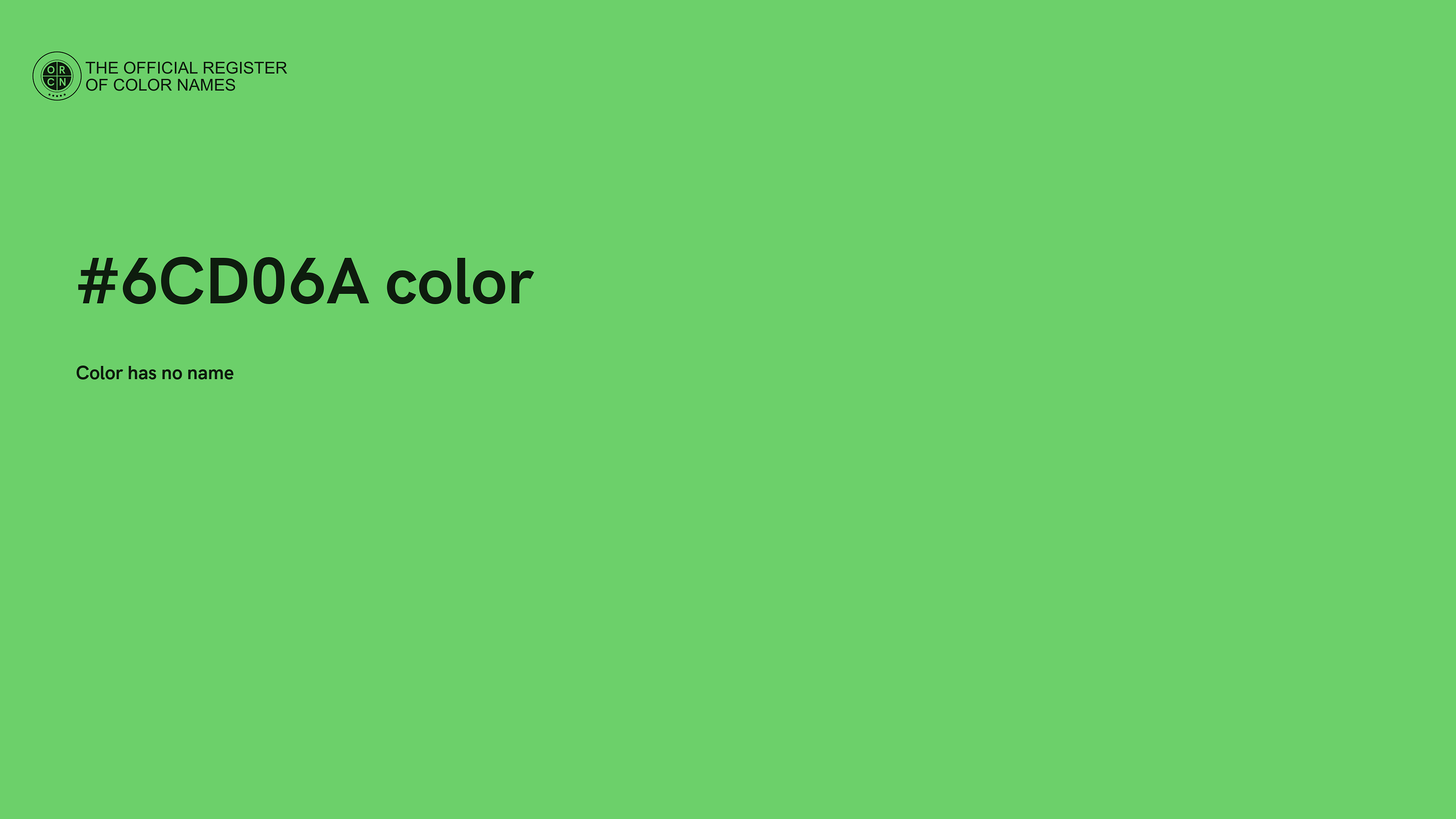 The digital color HEX #6CD06A belongs to the Green Color Family featuring Moderate Saturation (Saturation Family) and Very Light (Brightness Family).