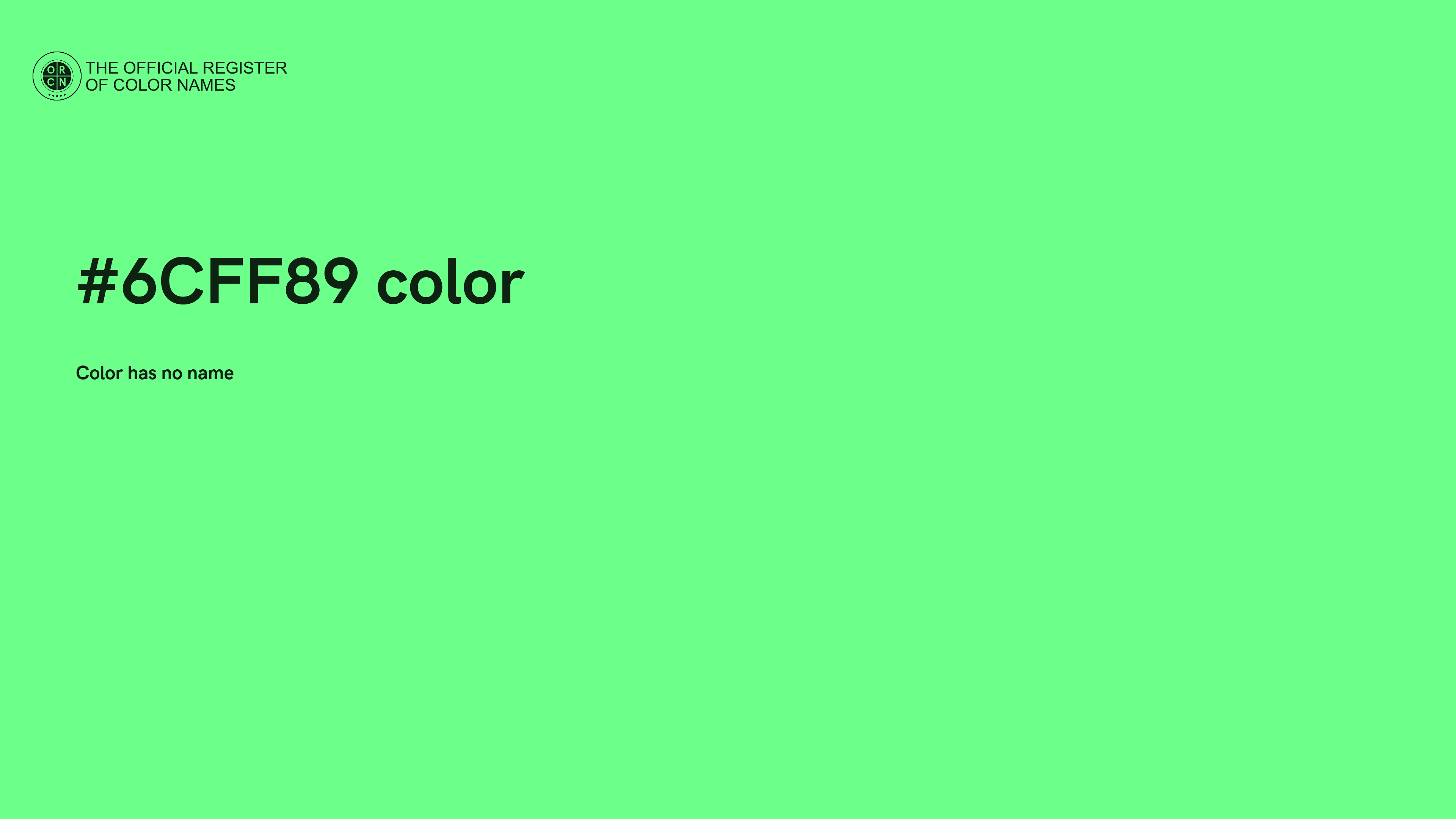 The digital color HEX #6CFF89 belongs to the Green Color Family featuring Full Saturation (Saturation Family) and Very Light (Brightness Family).