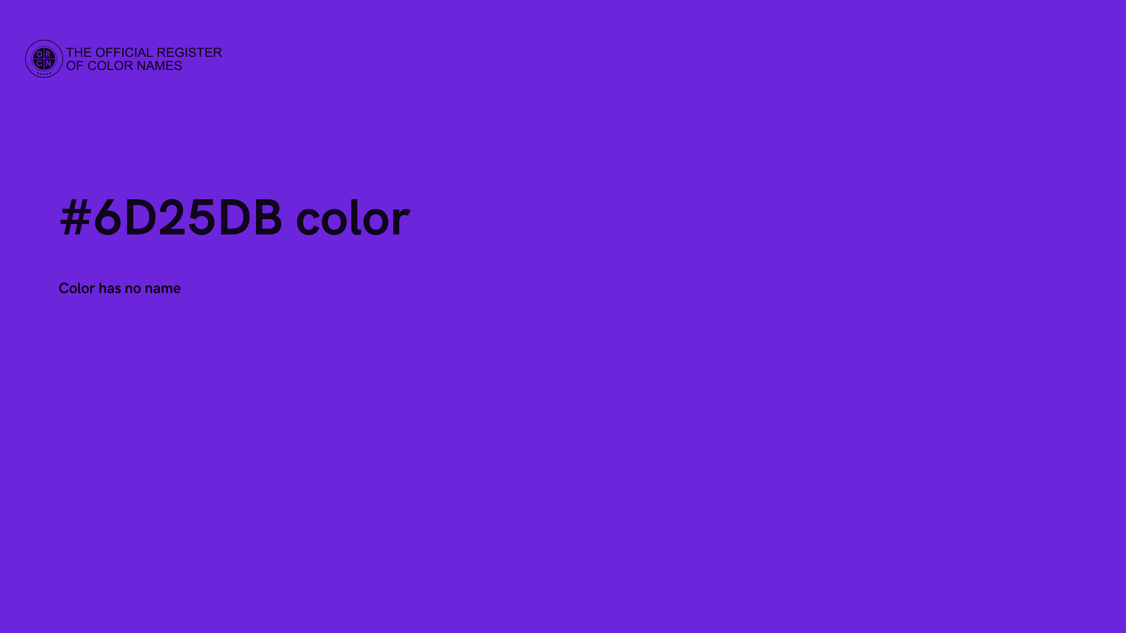 For printing in non digital world, #6D25DB is represented in CMYK as 43 Cyan, 71 Magenta, 0 Yellow, and 14 Black (Key) (C:43 M:71 Y:0 K:14).