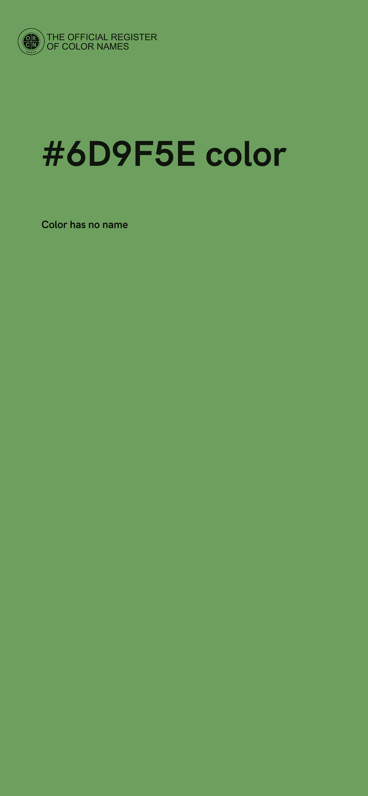 The digital color HEX #6D9F5E belongs to the Green Color Family featuring Mild Saturation (Saturation Family) and Light (Brightness Family).