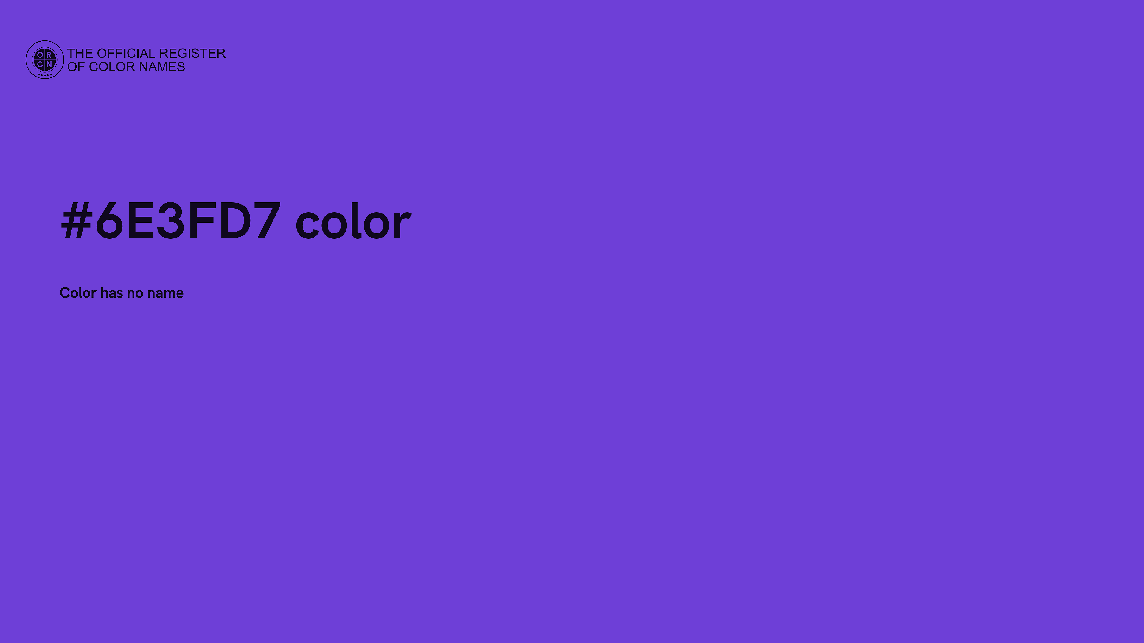 For printing in non digital world, #6E3FD7 is represented in CMYK as 41 Cyan, 60 Magenta, 0 Yellow, and 16 Black (Key) (C:41 M:60 Y:0 K:16).