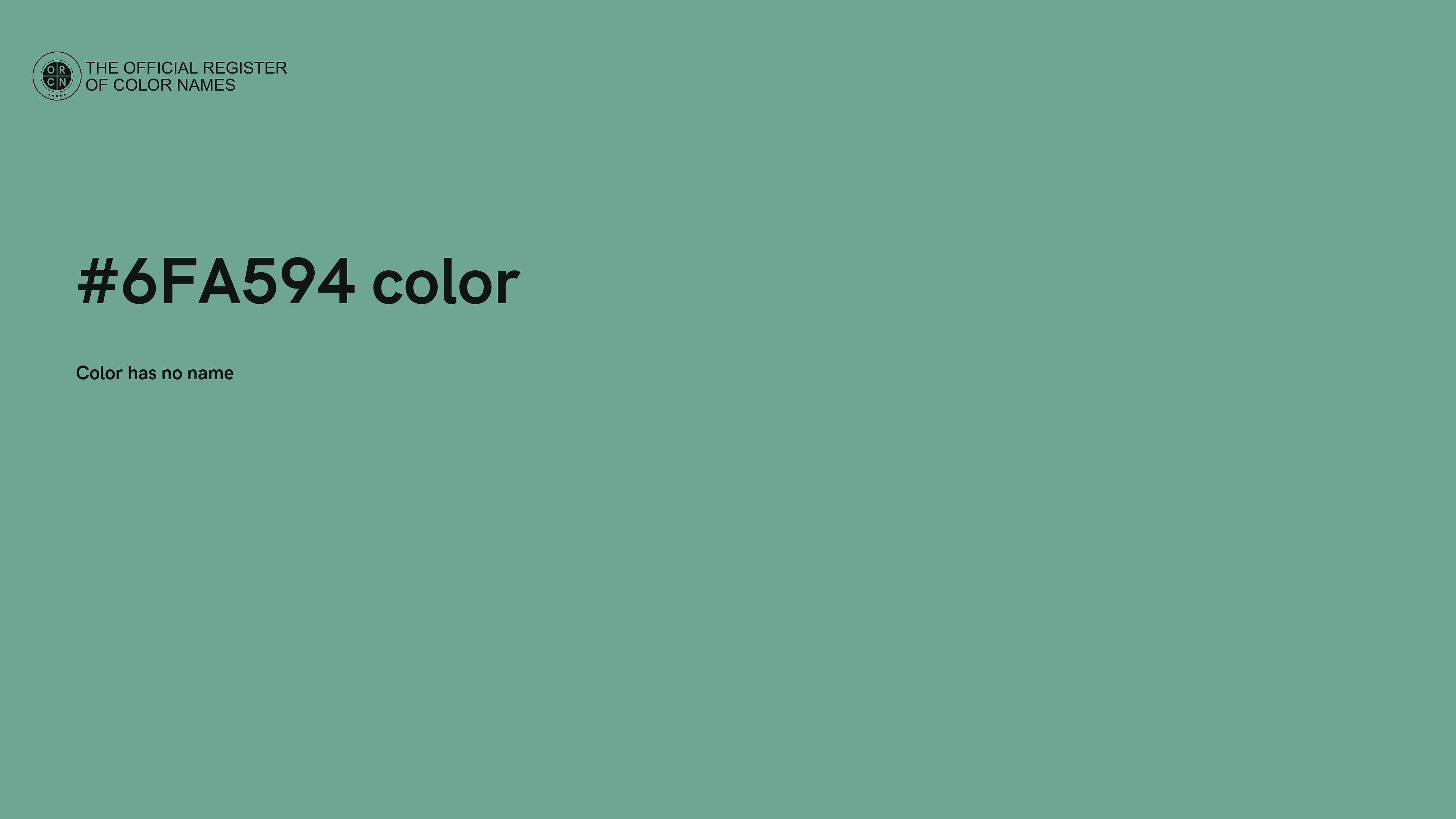 The digital color HEX #6FA594 belongs to the Spring Green Color Family featuring Low Saturation (Saturation Family) and Light (Brightness Family).