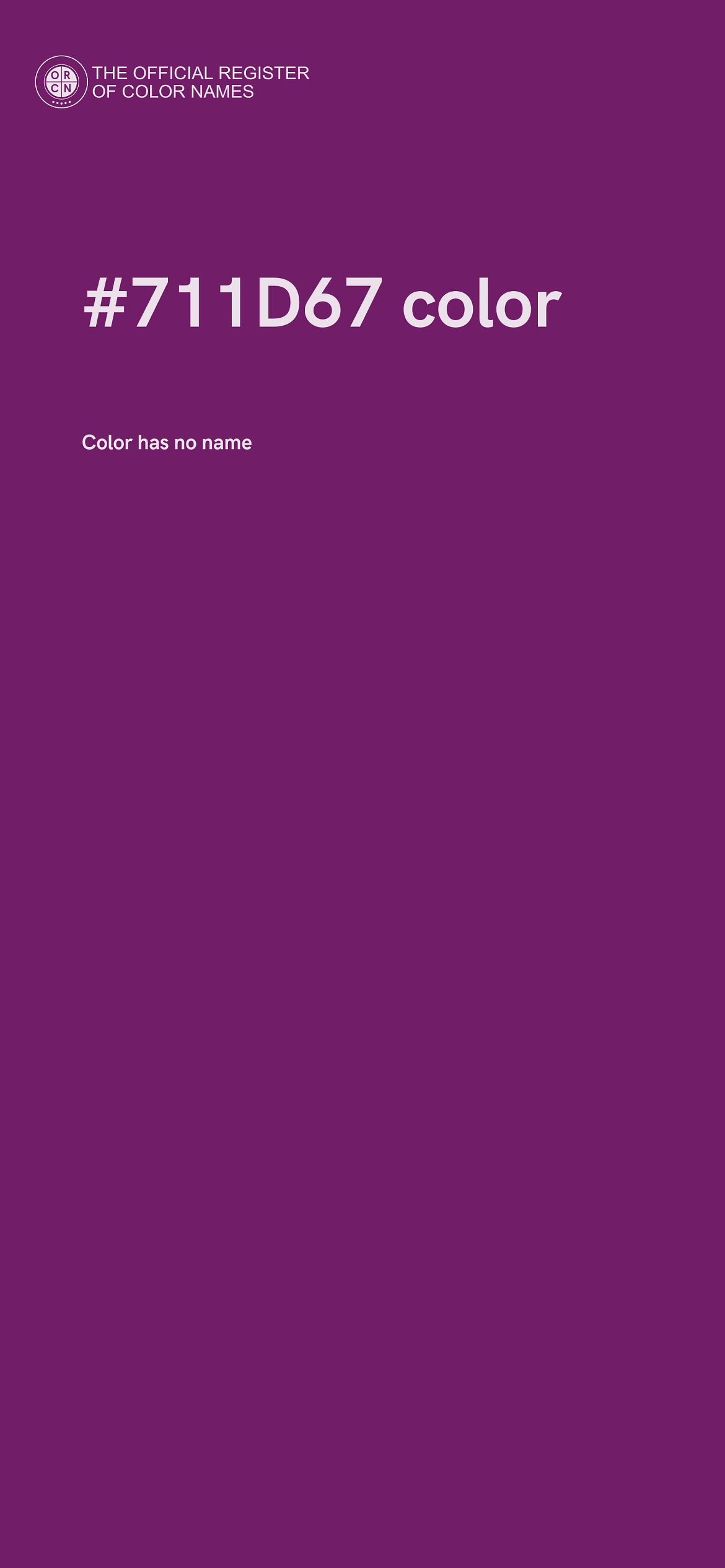 The digital color HEX #711D67 belongs to the Magenta Color Family featuring Moderate Saturation (Saturation Family) and Neutral (Brightness Family).