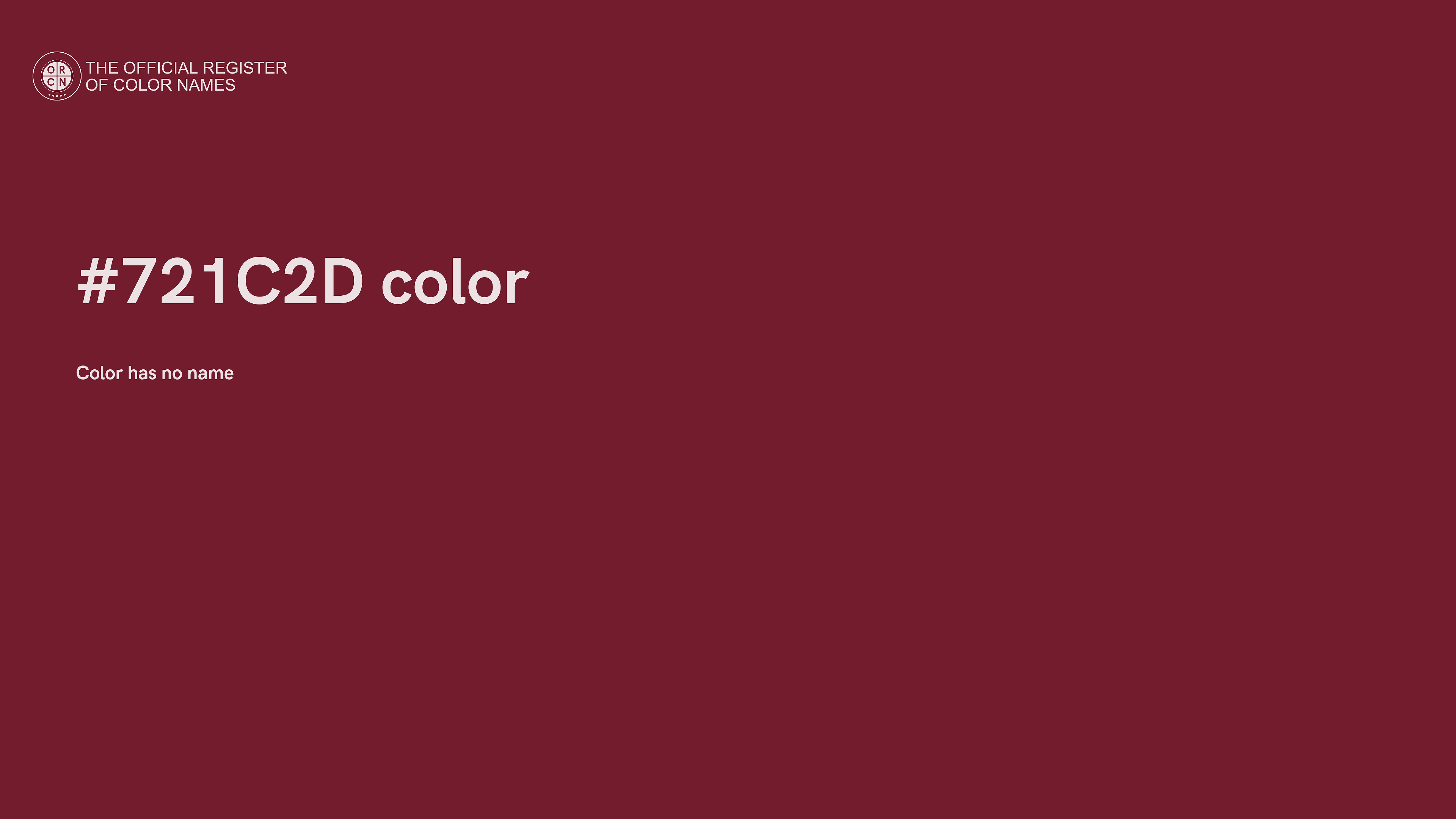 The digital color HEX #721C2D belongs to the Red Color Family featuring High Saturation (Saturation Family) and Neutral (Brightness Family).