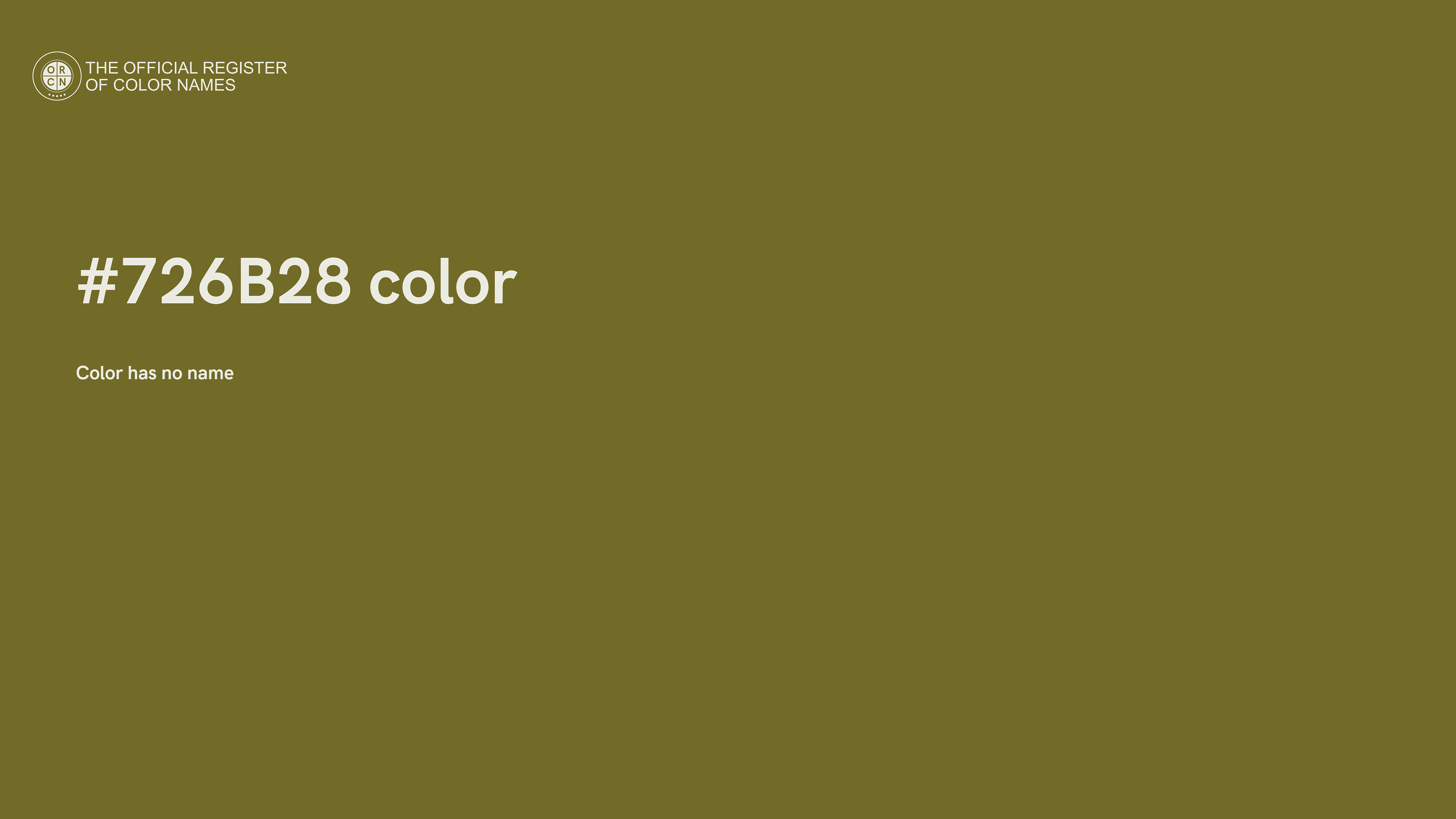For printing in non digital world, #726B28 is represented in CMYK as 0 Cyan, 3 Magenta, 29 Yellow, and 55 Black (Key) (C:0 M:3 Y:29 K:55).