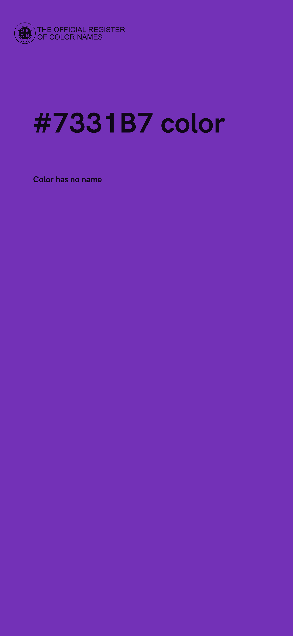 The digital color HEX #7331B7 belongs to the Violet Color Family featuring Moderate Saturation (Saturation Family) and Light (Brightness Family).