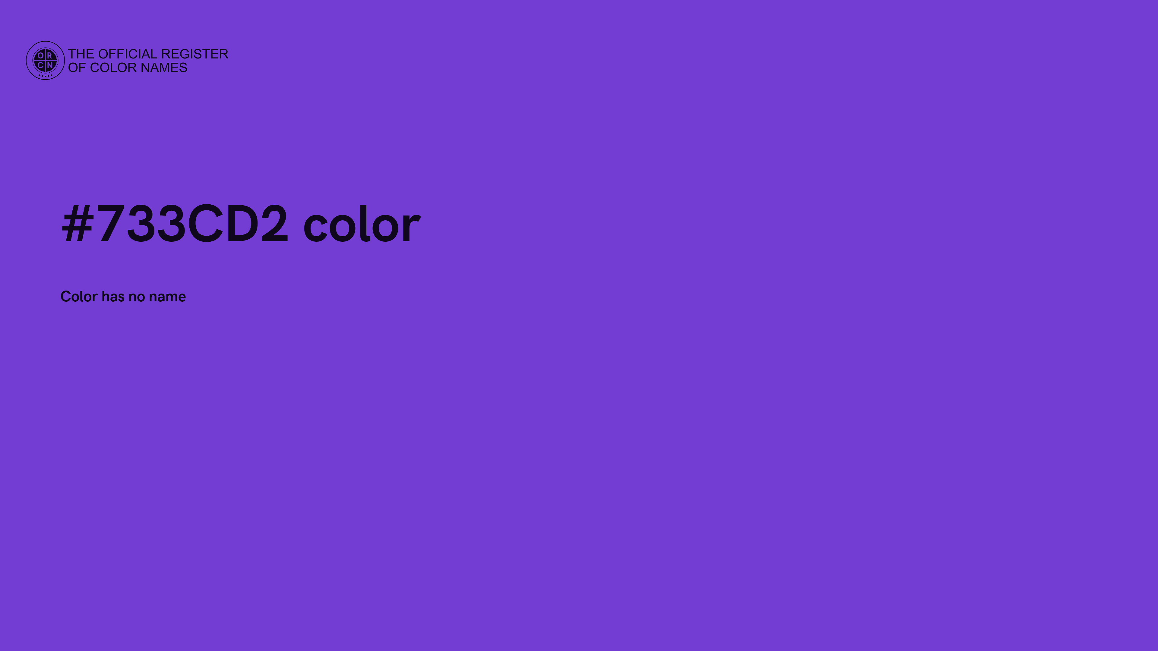 For printing in non digital world, #733CD2 is represented in CMYK as 37 Cyan, 59 Magenta, 0 Yellow, and 18 Black (Key) (C:37 M:59 Y:0 K:18).