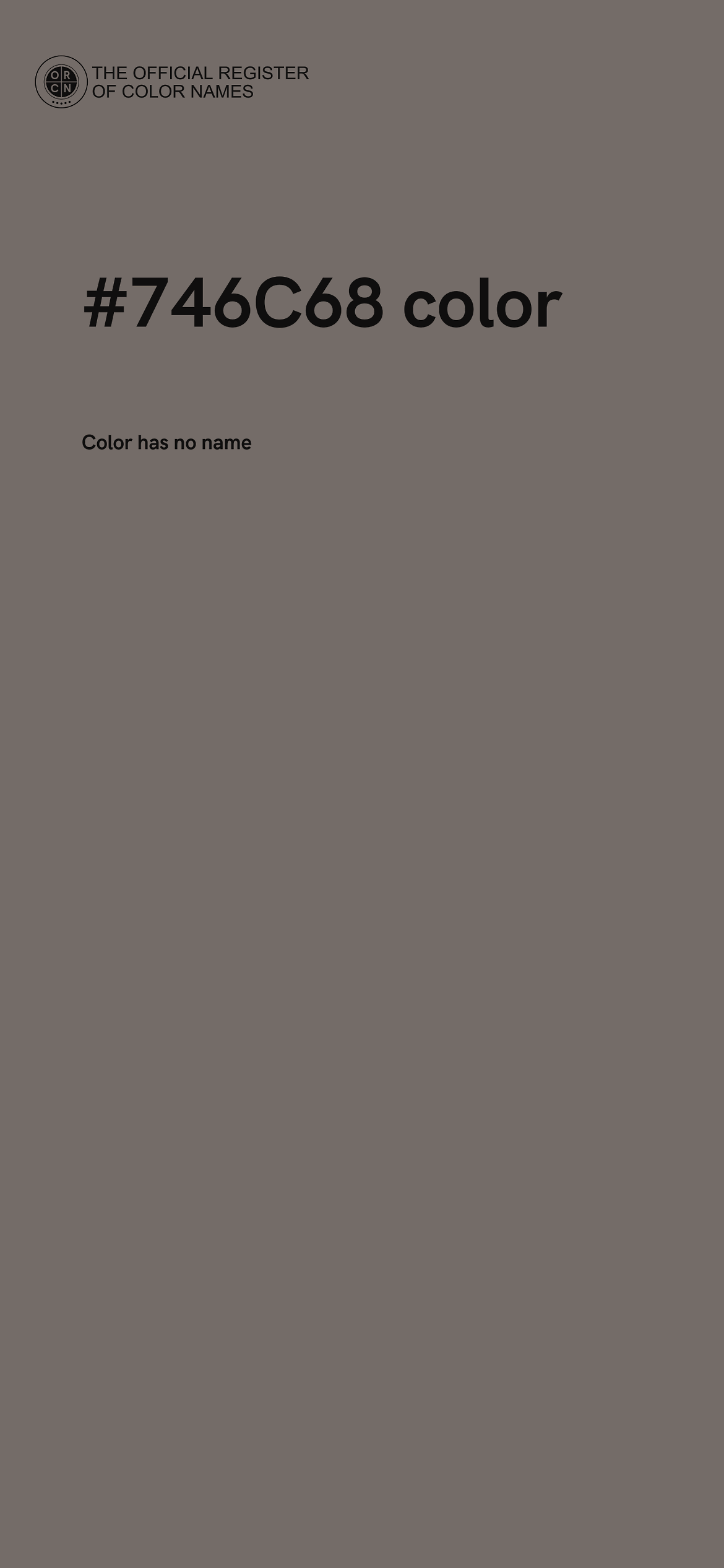 For printing in non digital world, #746C68 is represented in CMYK as 0 Cyan, 3 Magenta, 5 Yellow, and 55 Black (Key) (C:0 M:3 Y:5 K:55).