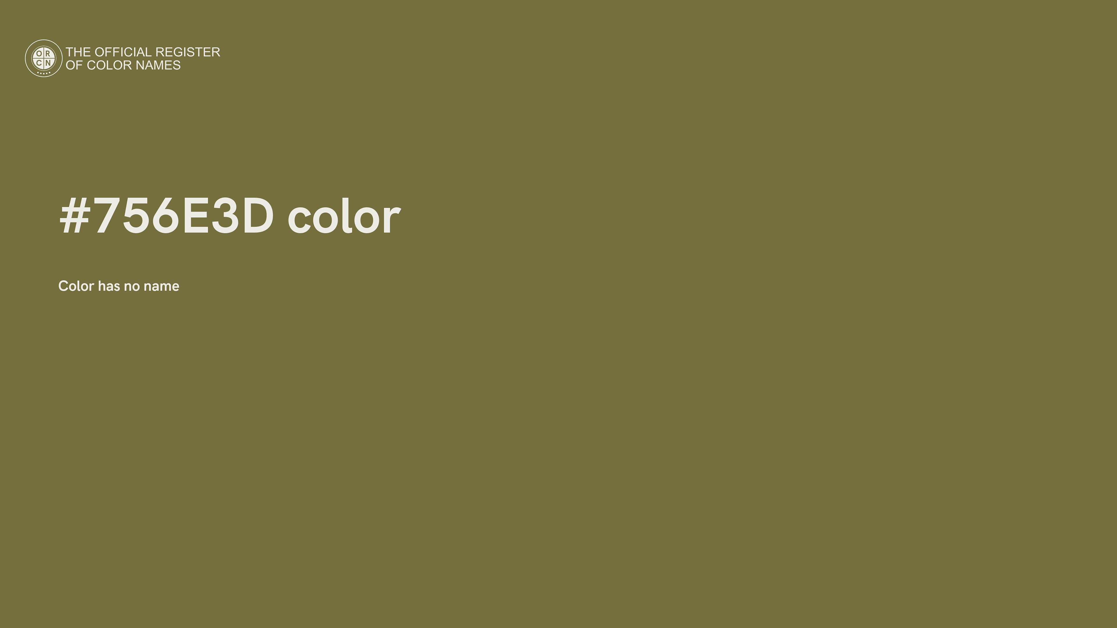 For printing in non digital world, #756E3D is represented in CMYK as 0 Cyan, 3 Magenta, 22 Yellow, and 54 Black (Key) (C:0 M:3 Y:22 K:54).