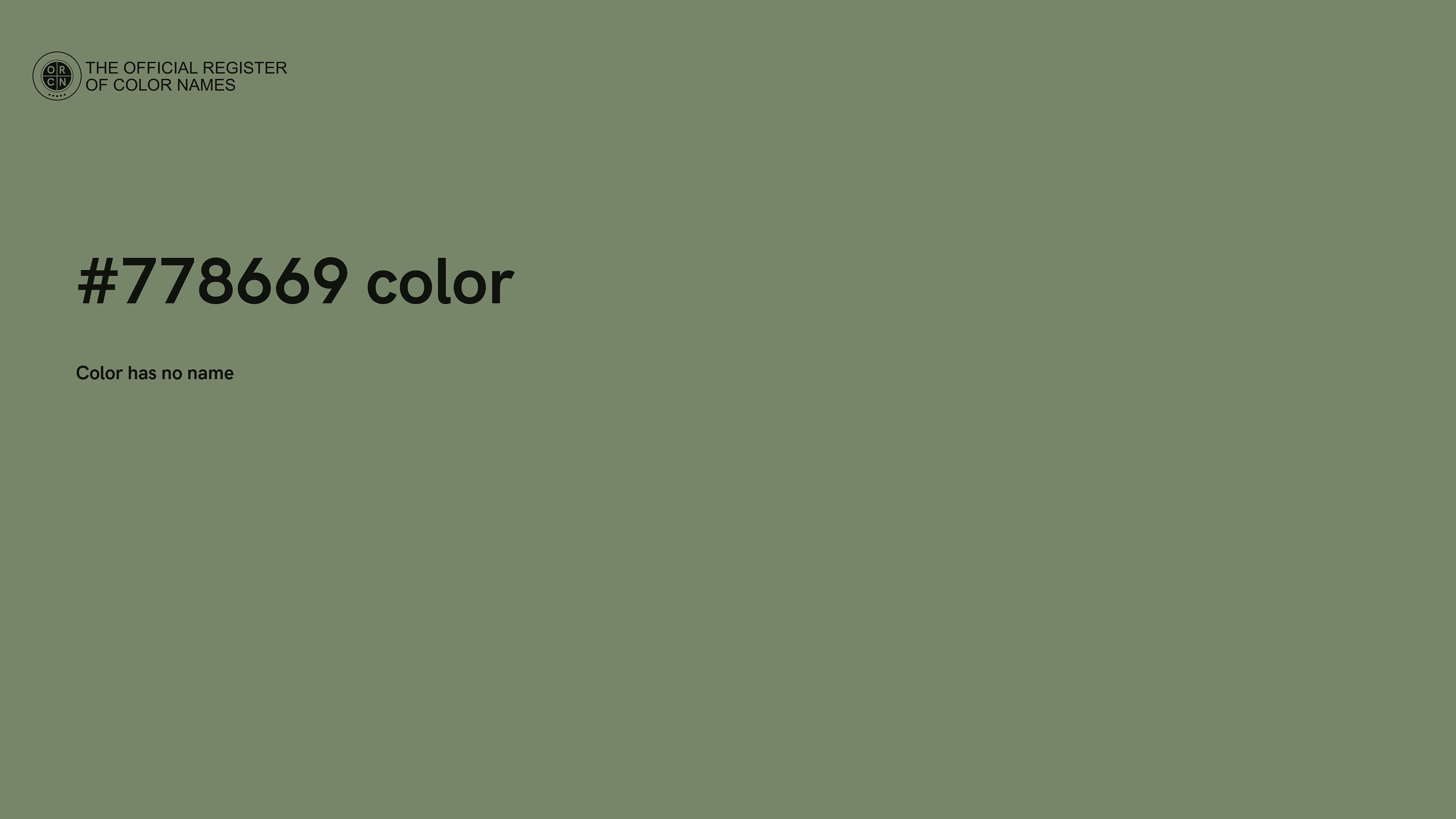 For printing in non digital world, #778669 is represented in CMYK as 6 Cyan, 0 Magenta, 11 Yellow, and 47 Black (Key) (C:6 M:0 Y:11 K:47).