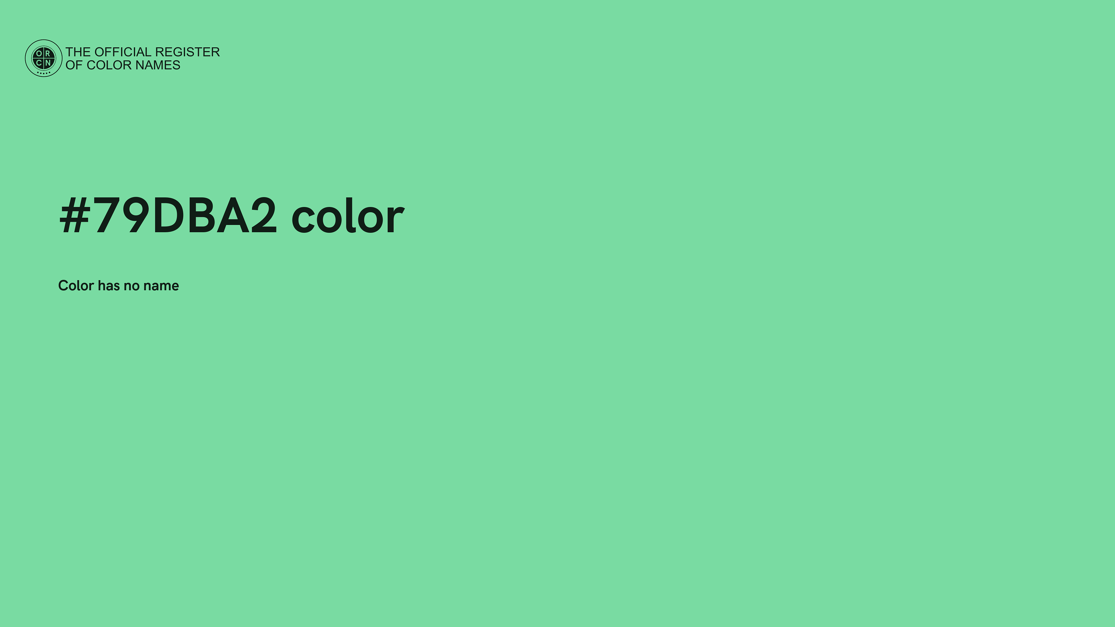 The digital color HEX #79DBA2 belongs to the Spring Green Color Family featuring Moderate Saturation (Saturation Family) and Very Light (Brightness Family).