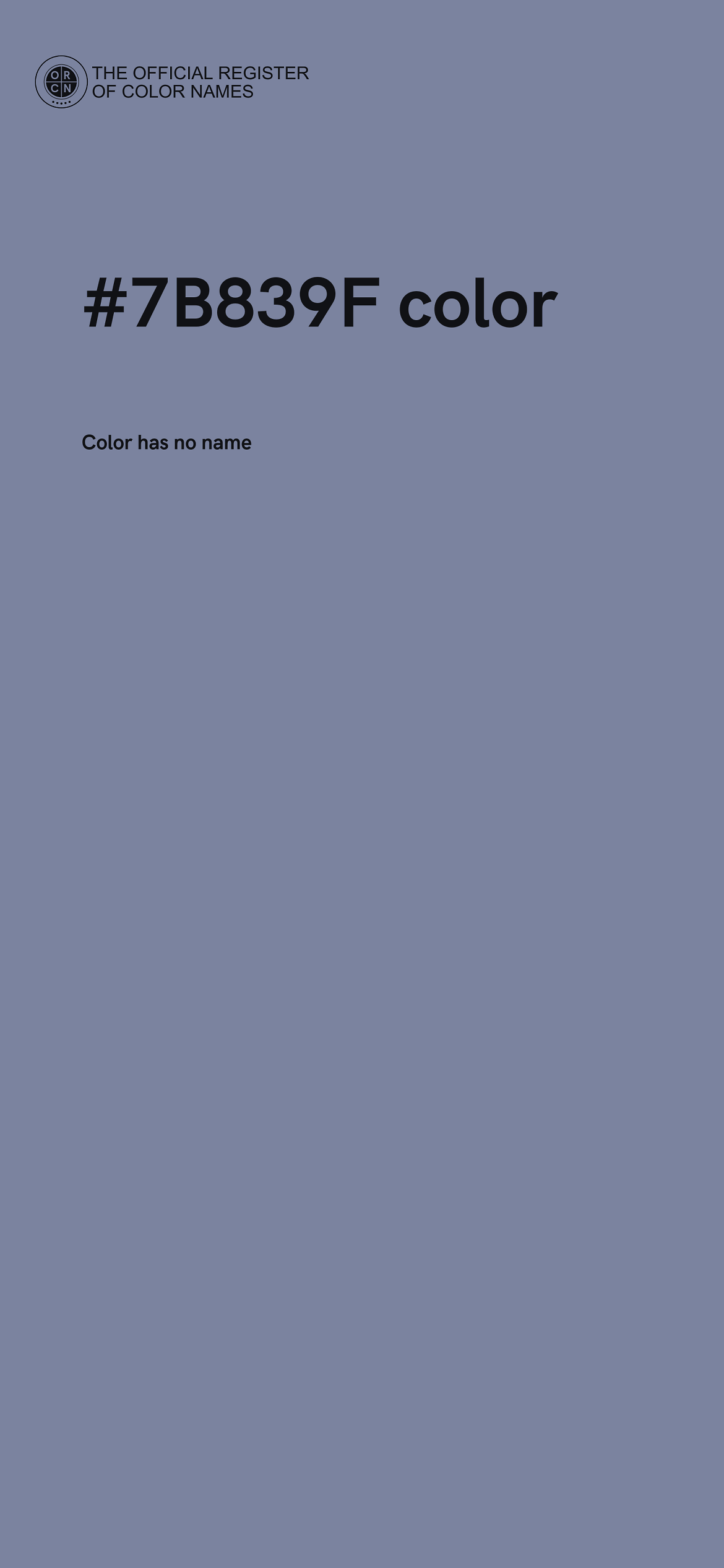 The digital color HEX #7B839F belongs to the Blue Color Family featuring Low Saturation (Saturation Family) and Light (Brightness Family).