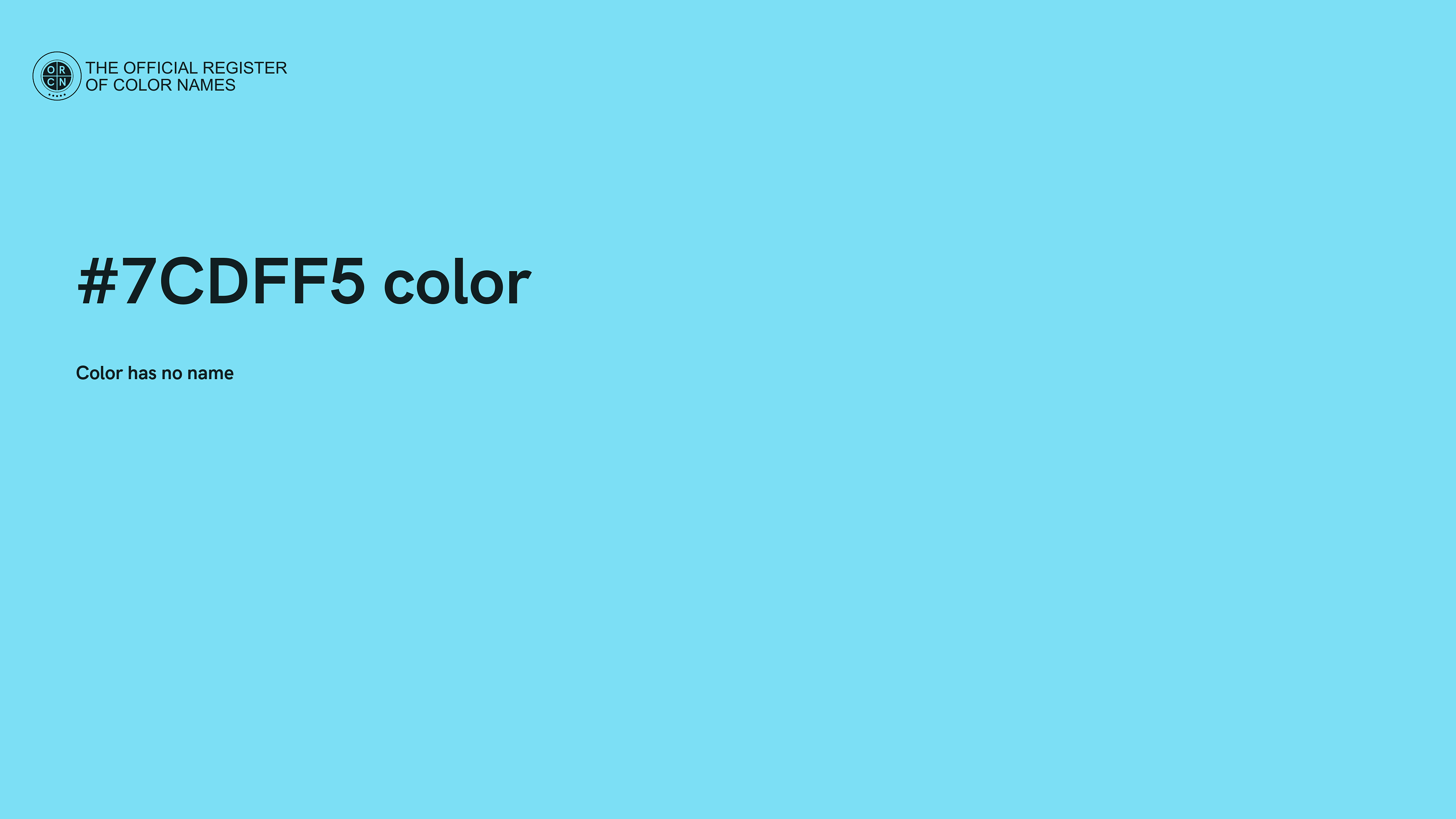 The digital color HEX #7CDFF5 belongs to the Cyan Color Family featuring Full Saturation (Saturation Family) and Very Light (Brightness Family).
