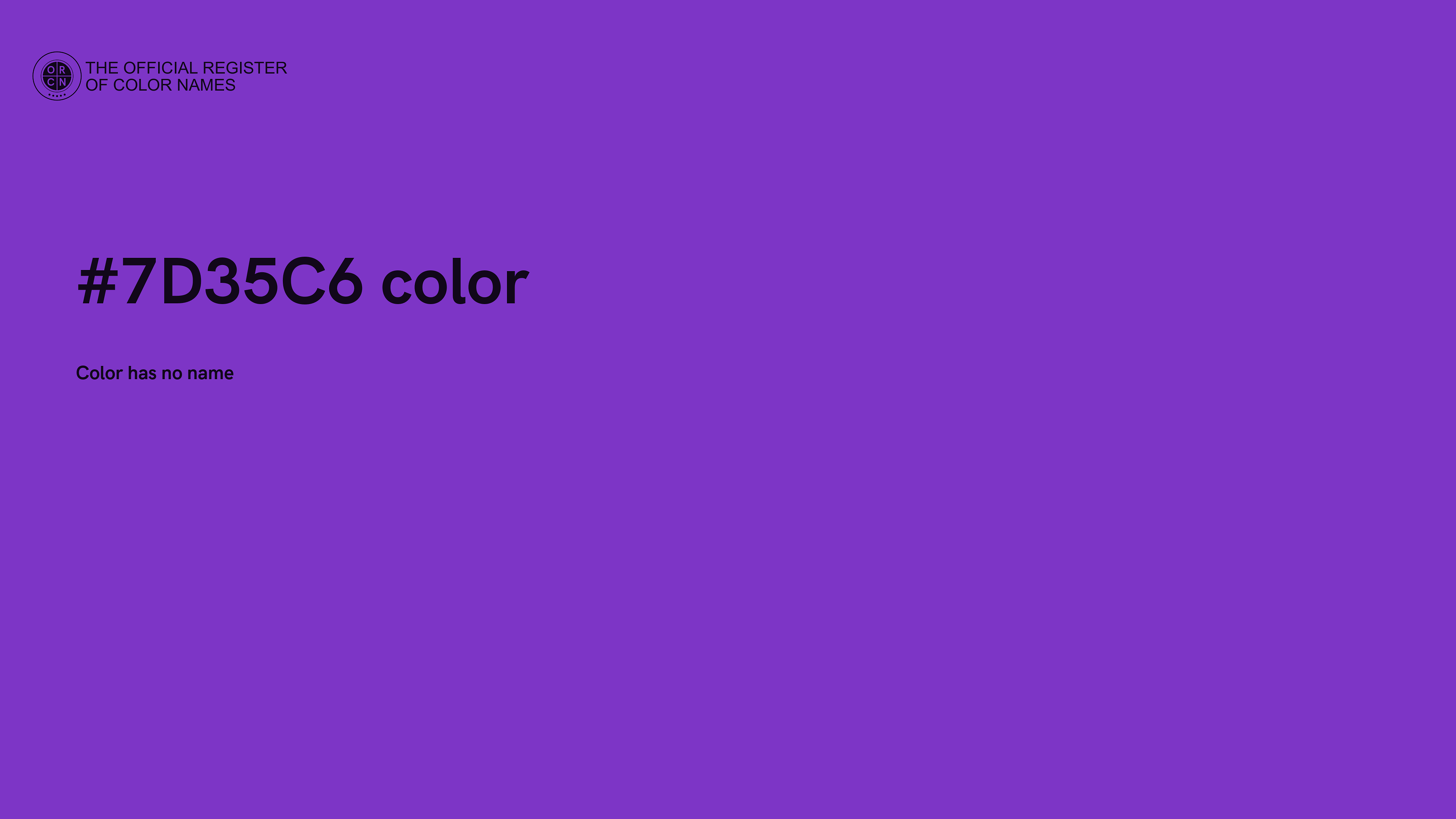 The digital color HEX #7D35C6 belongs to the Violet Color Family featuring Moderate Saturation (Saturation Family) and Light (Brightness Family).