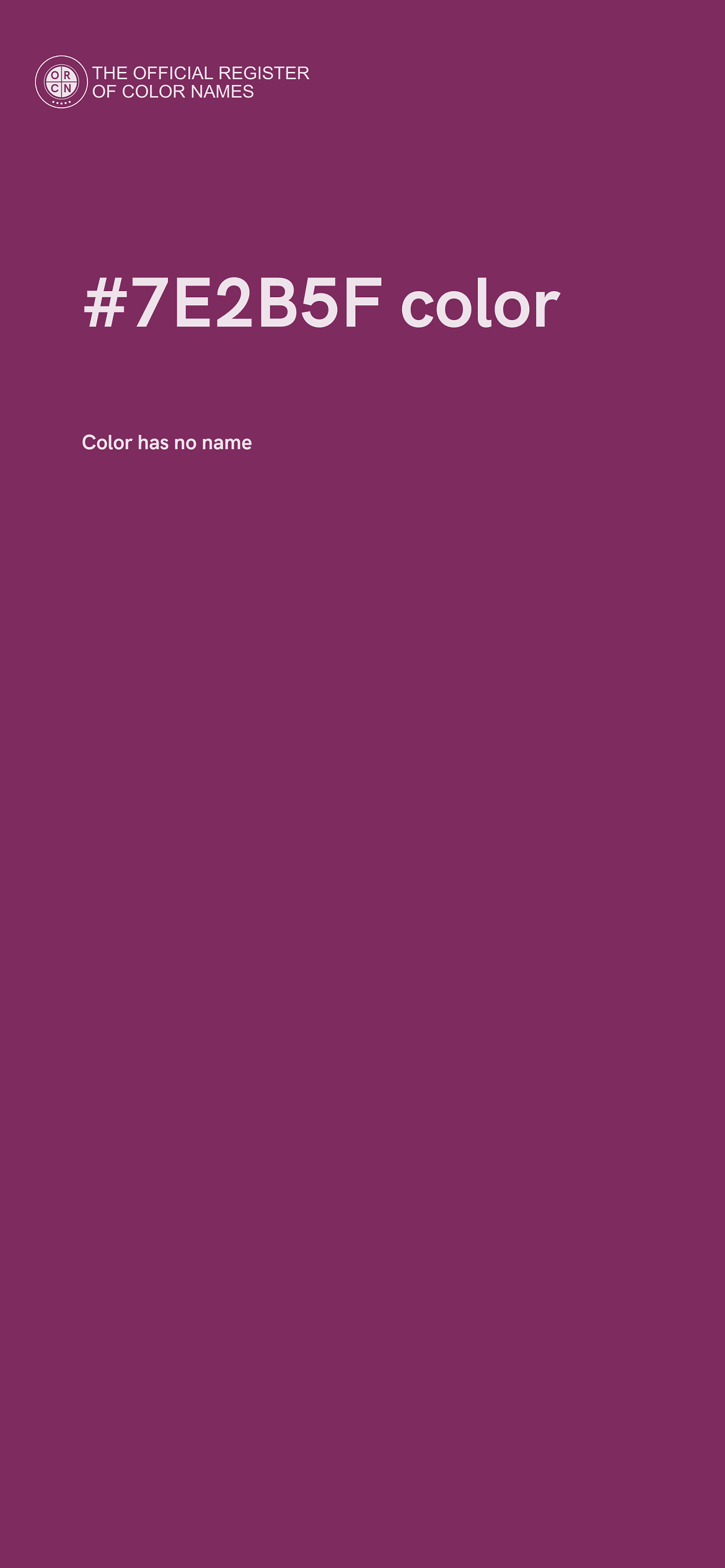 The digital color HEX #7E2B5F belongs to the Rose Color Family featuring Moderate Saturation (Saturation Family) and Neutral (Brightness Family).