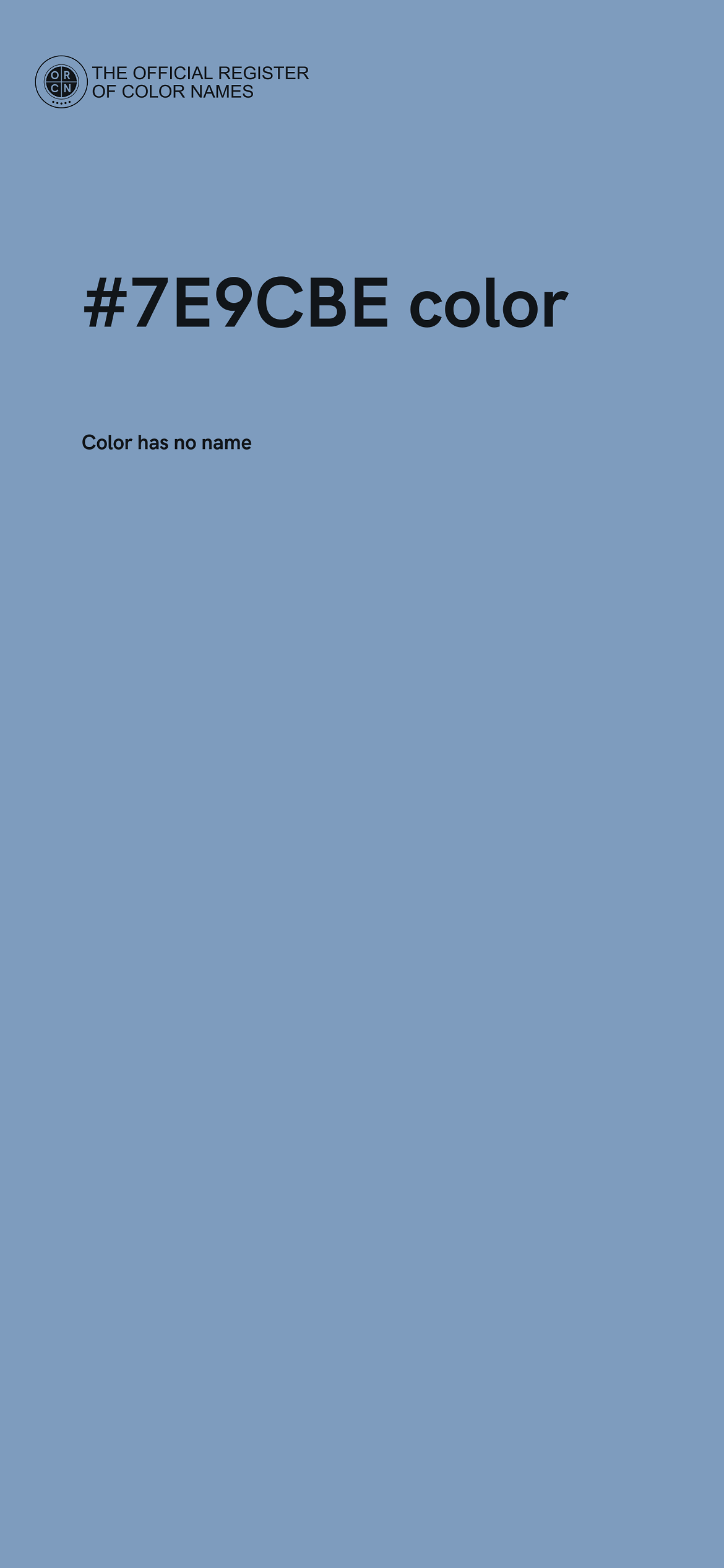 The digital color HEX #7E9CBE belongs to the Azure Color Family featuring Mild Saturation (Saturation Family) and Very Light (Brightness Family).