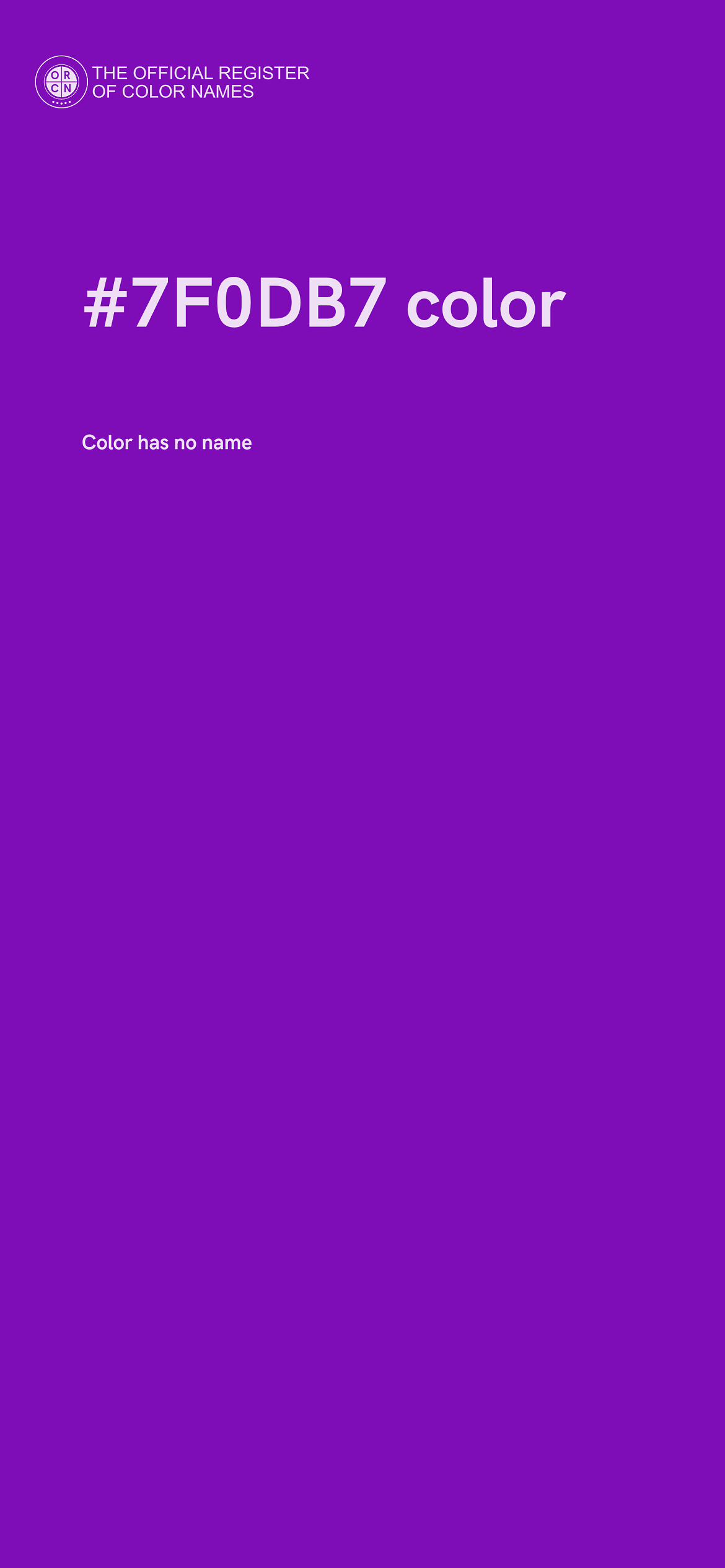 The digital color HEX #7F0DB7 belongs to the Violet Color Family featuring Full Saturation (Saturation Family) and Neutral (Brightness Family).