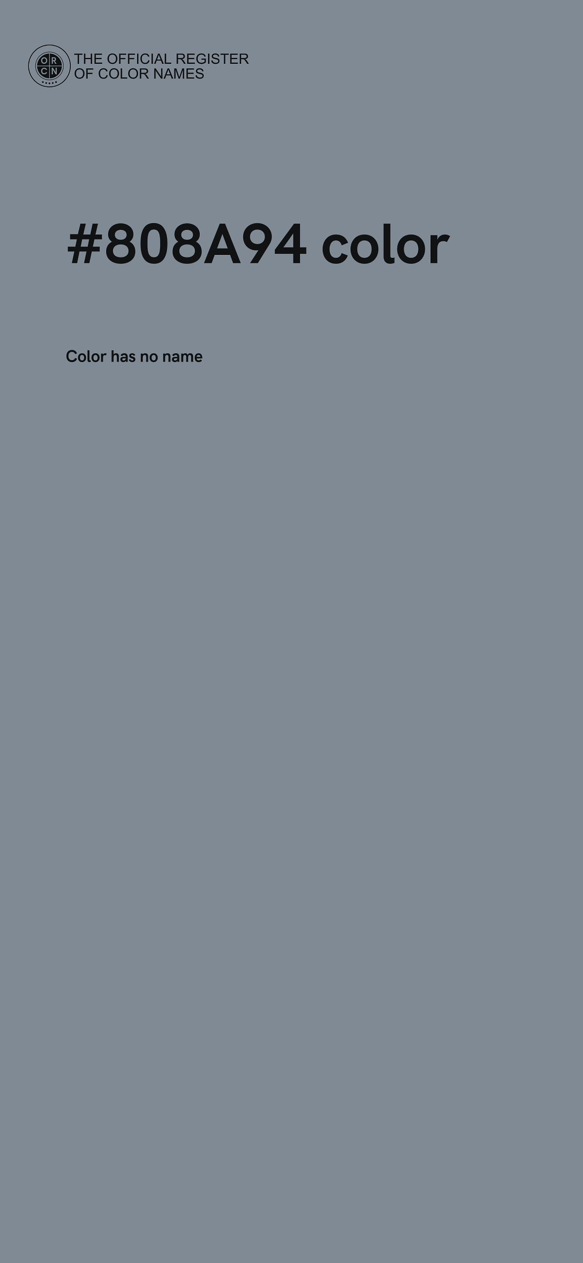 For printing in non digital world, #808A94 is represented in CMYK as 8 Cyan, 4 Magenta, 0 Yellow, and 42 Black (Key) (C:8 M:4 Y:0 K:42).