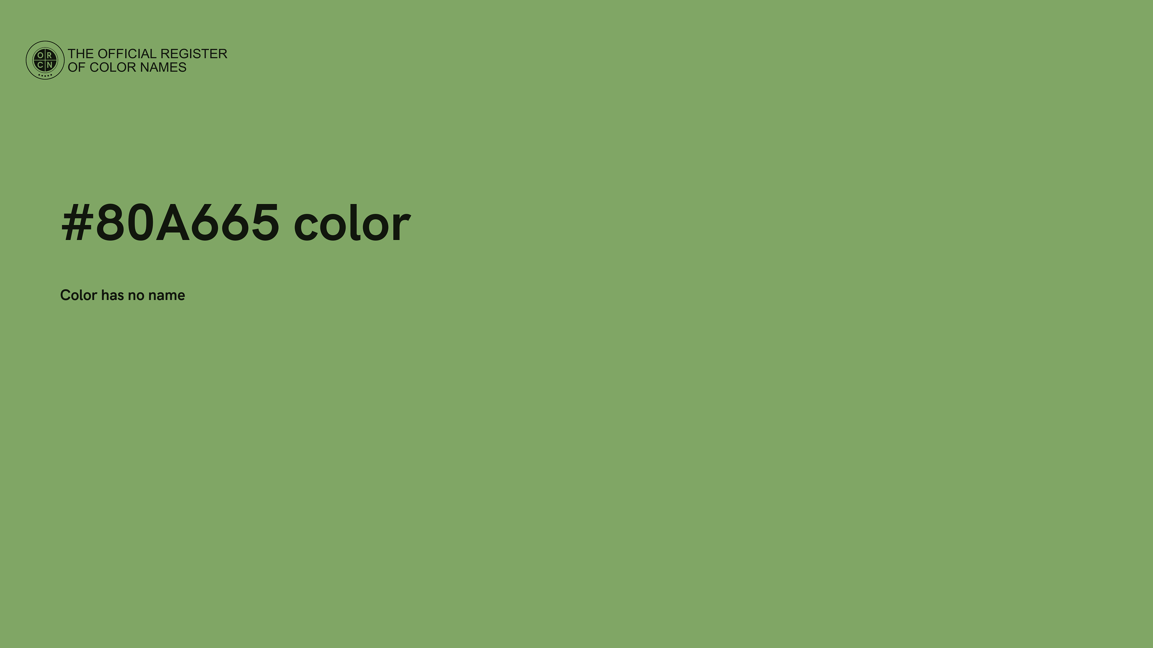 For printing in non digital world, #80A665 is represented in CMYK as 15 Cyan, 0 Magenta, 25 Yellow, and 35 Black (Key) (C:15 M:0 Y:25 K:35).