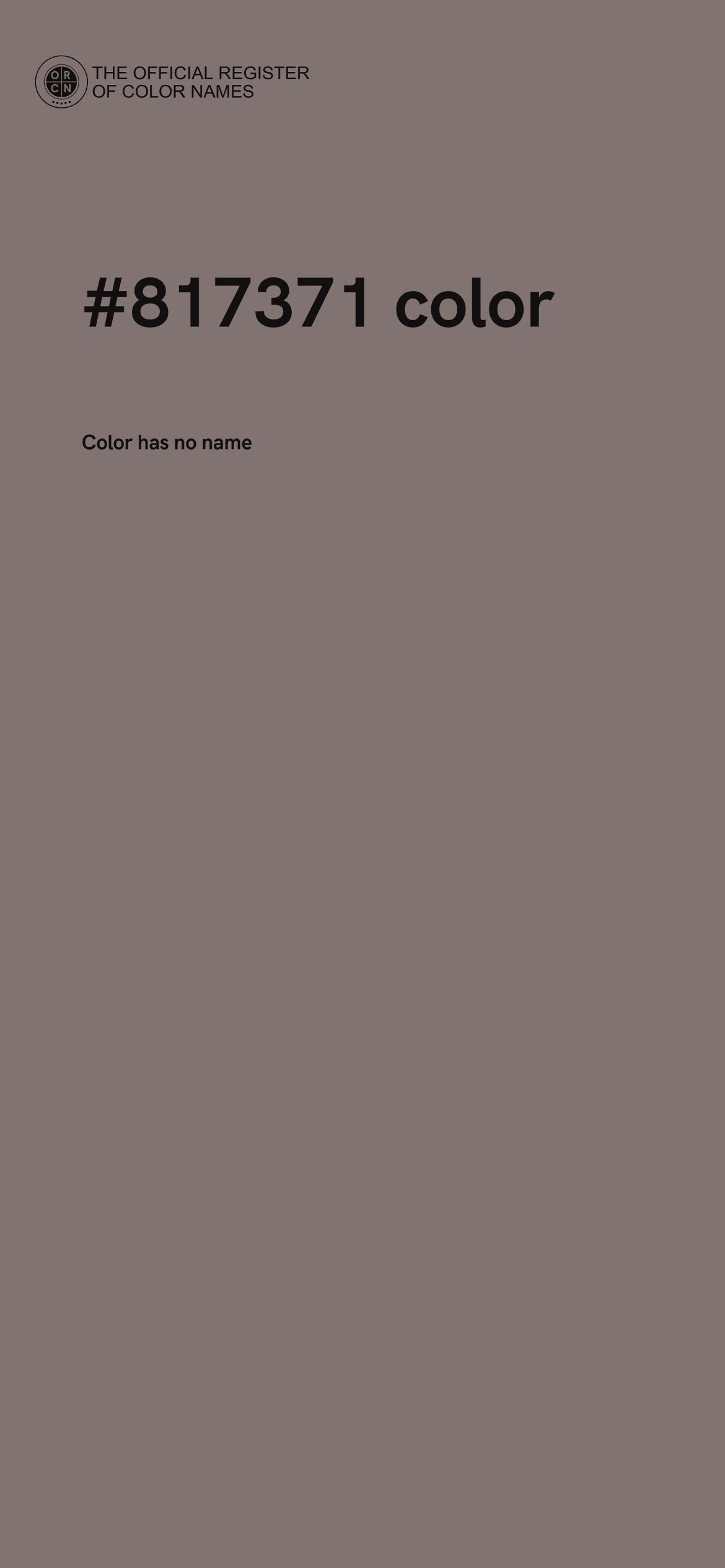 The digital color HEX #817371 belongs to the Red Color Family featuring Desaturated (Saturation Family) and Light (Brightness Family).