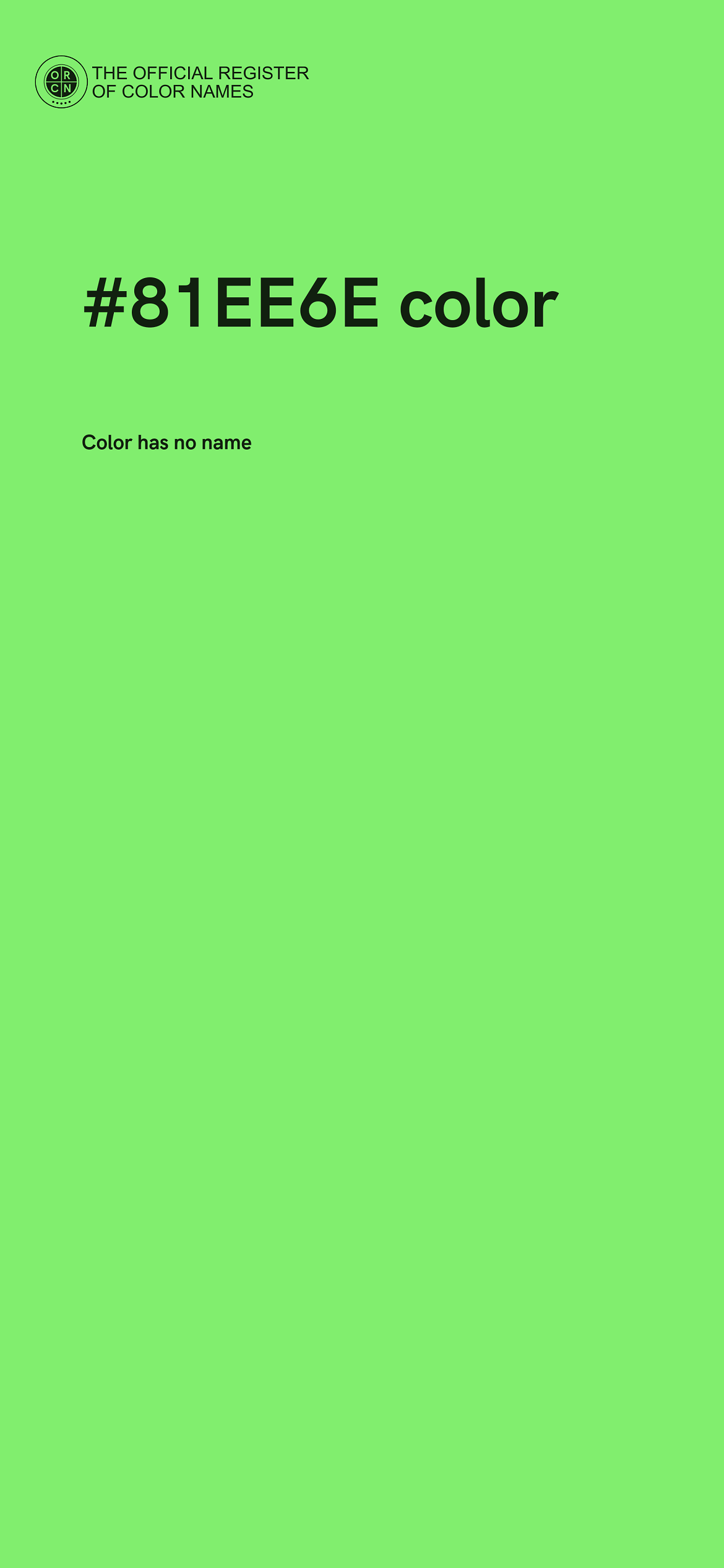 The digital color HEX #81EE6E belongs to the Green Color Family featuring High Saturation (Saturation Family) and Very Light (Brightness Family).